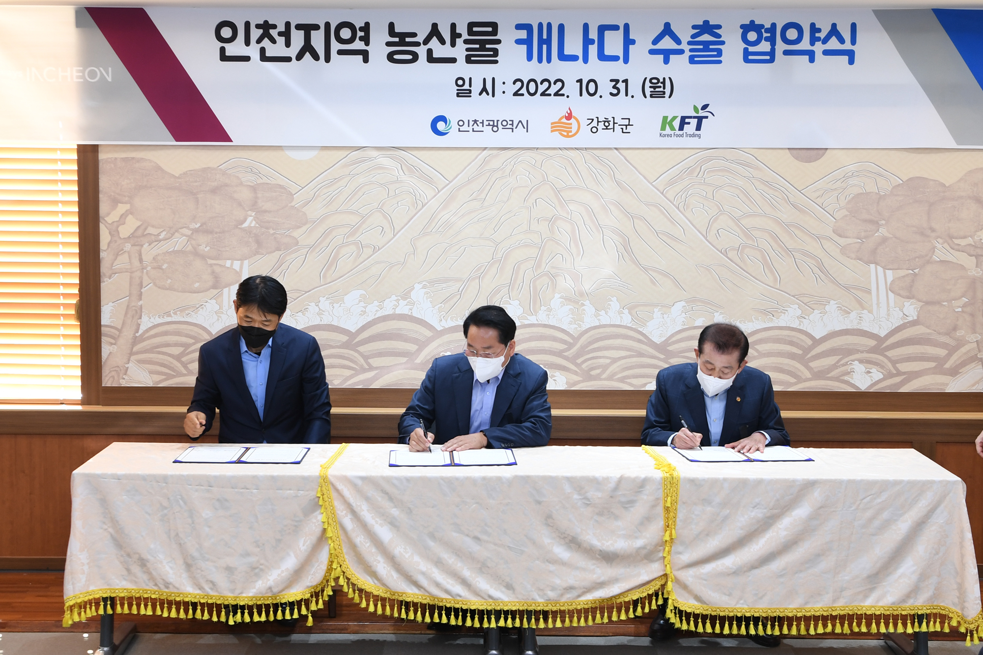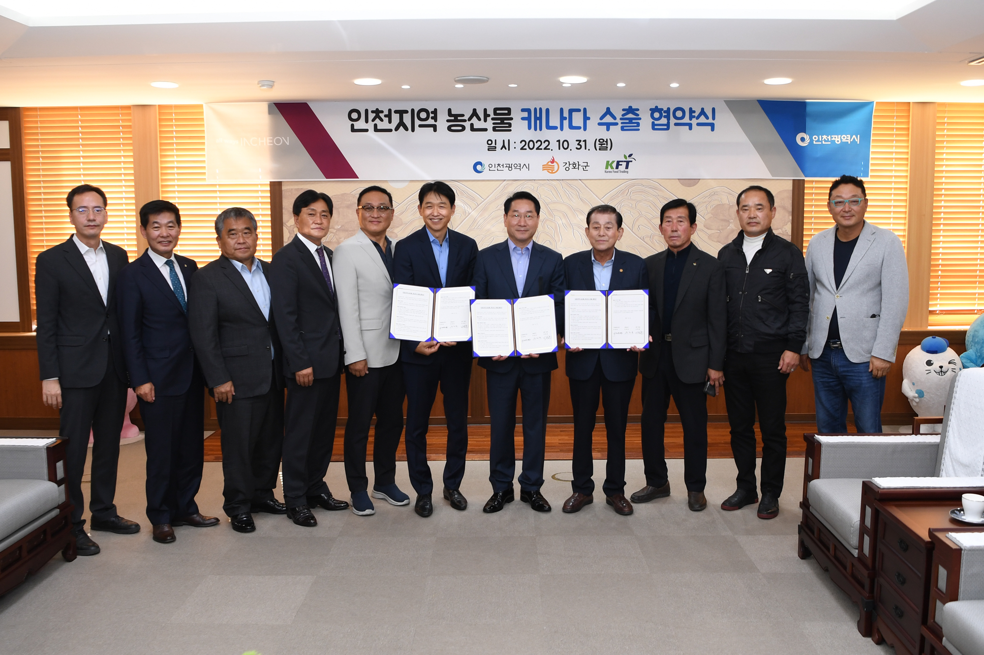 인천광역시(시장 유정복)와 강화군(군수 유천호)은 31일 캐나다 한인 최대 유통업체인 Galleria KFT(회장 민병훈)과 지역 농산물 수출을 위한 협약을 맺었다.