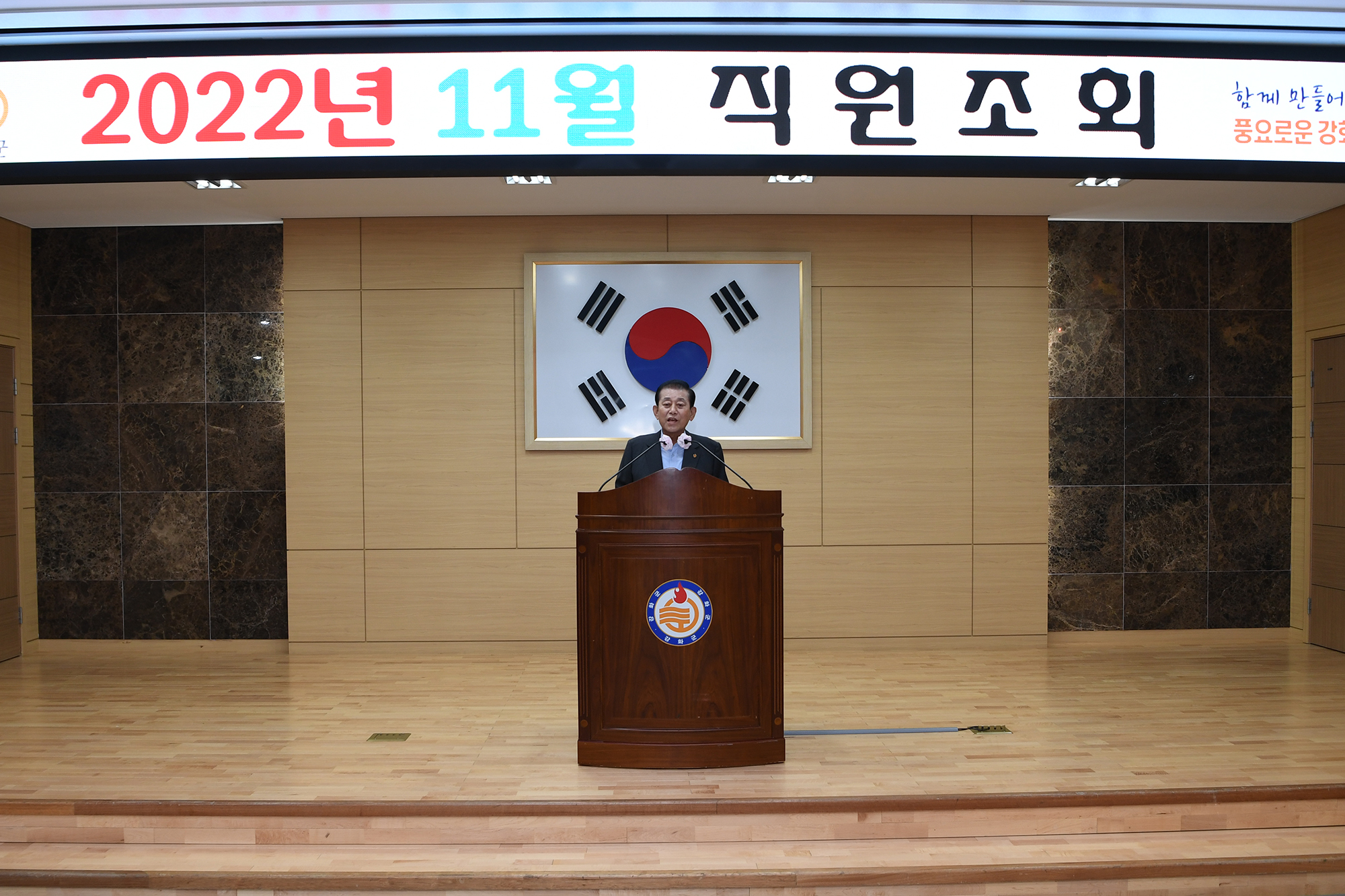 강화군, 11월 직원조회 개최 전 직원 검은 리본 패용