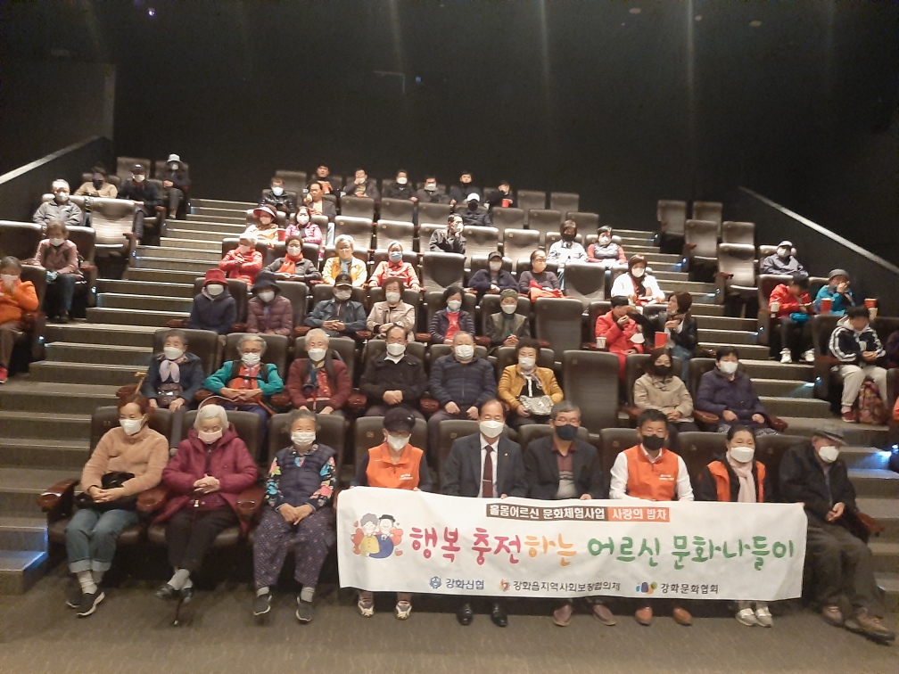 강화읍지역사회보장협의체(민간위원장 김용우, 이하 ‘협의체’)와 강화신용협동조합(조합장 성문수)는 지난 1일 강화군 작은영화관에서 저소득 독거노인, 장애인, 어려운 이웃 90여 가정을 대상으로 ‘행복충전하는 문화나들이’ 행사를 가졌다.
