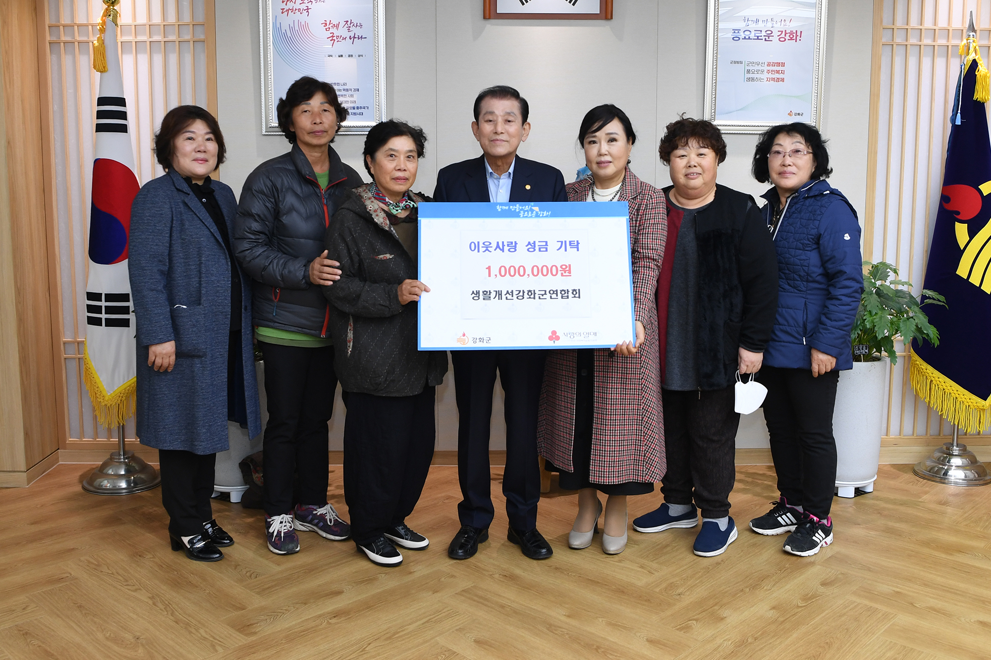 강화군(군수 유천호)은 지난 7일 생활개선강화군연합회(회장 김학순)에서 이웃 돕기 성금 100만 원을 기탁했다고 밝혔다.