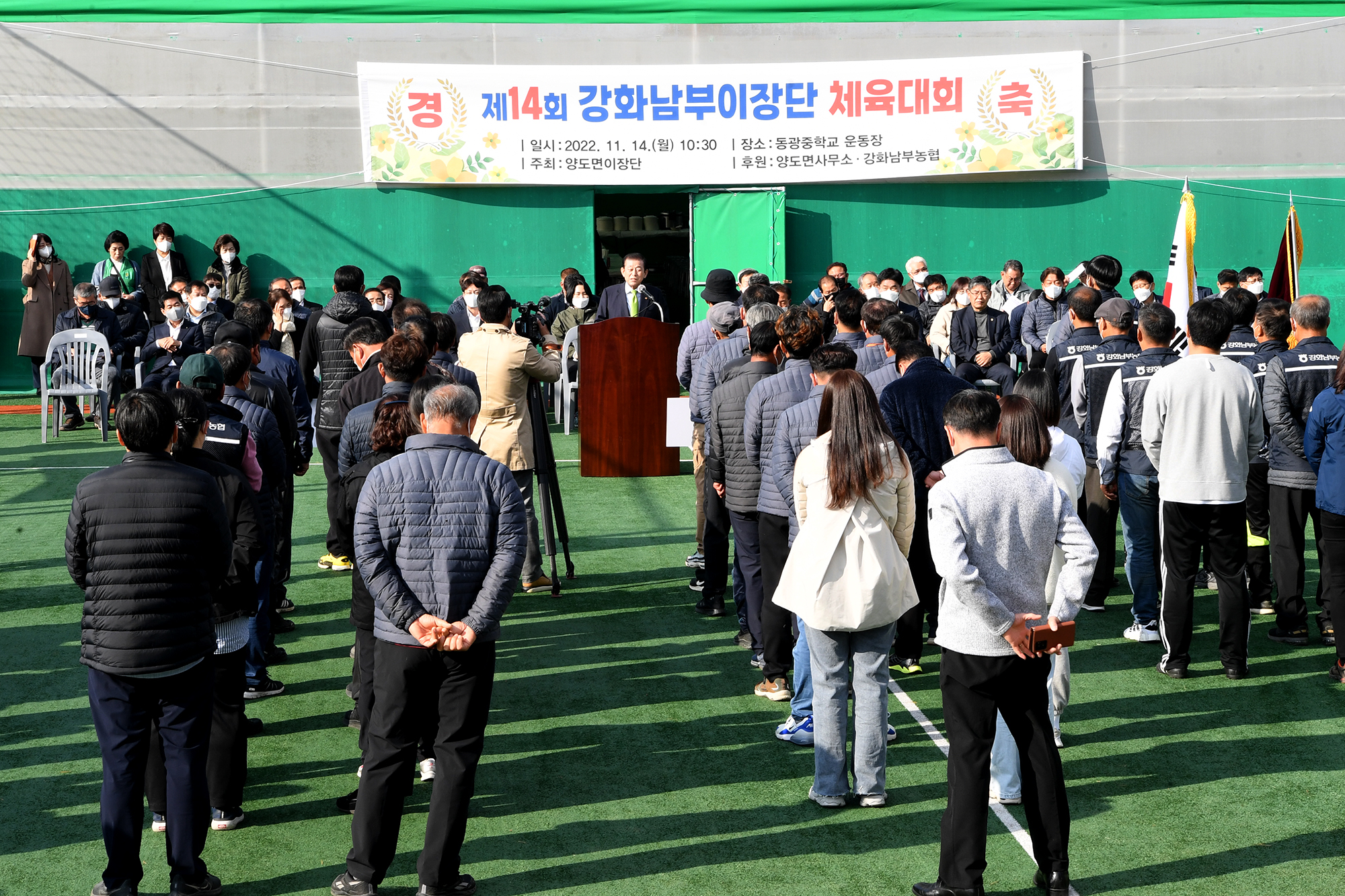 강화군 양도면 이장단(단장 김옥현)은 지난 14일 양도면 동광중학교 족구장에서 강화군 남부지역(불은, 길상, 화도, 양도) 이장단 체육대회를 성황리에 개최했다.