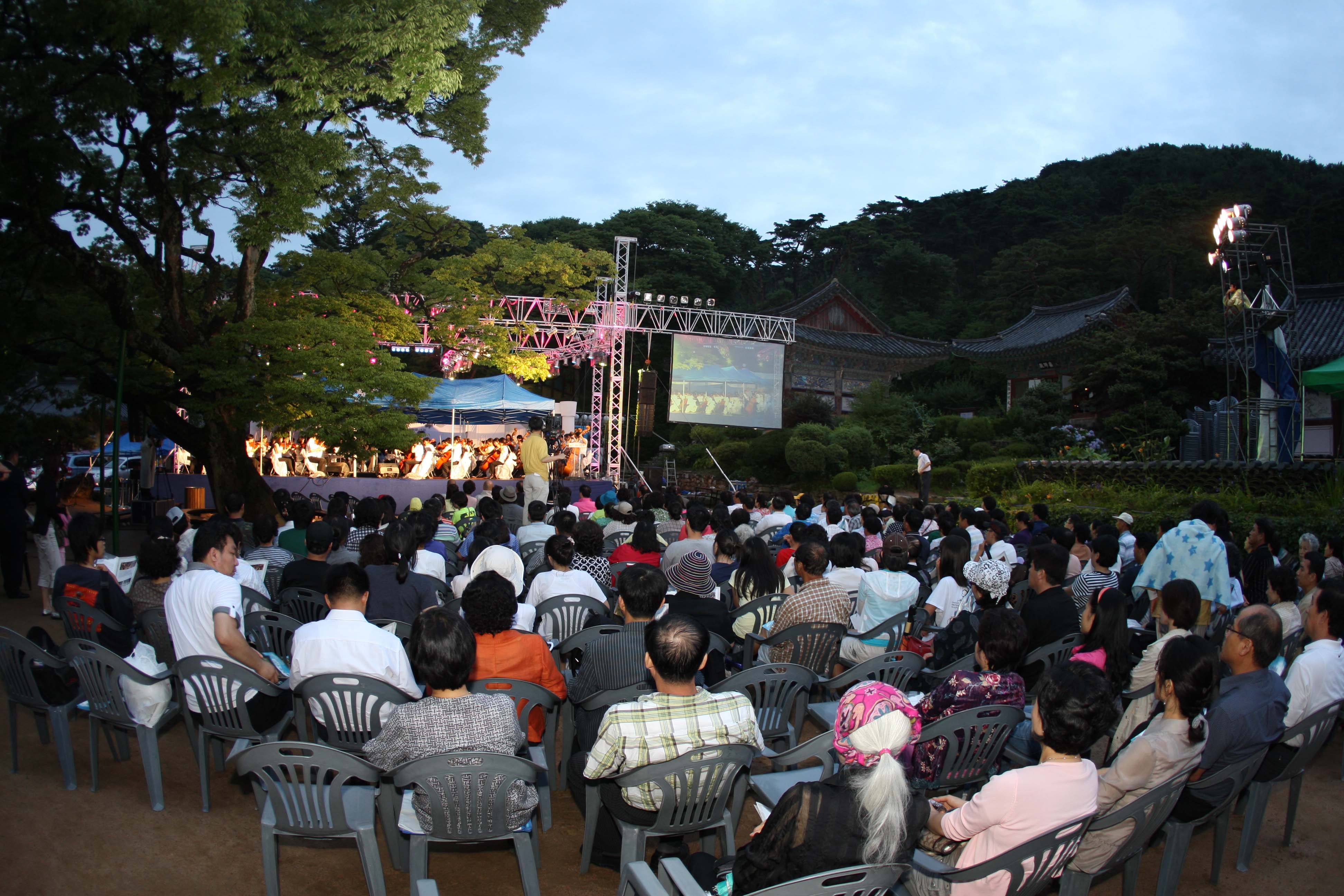 유서깊은 사찰 강화도 전등사에서 더위를 식혀주는 한 여름밤의 산사음악회가 1천여명의 청중이 몰린 가운데 열렸다