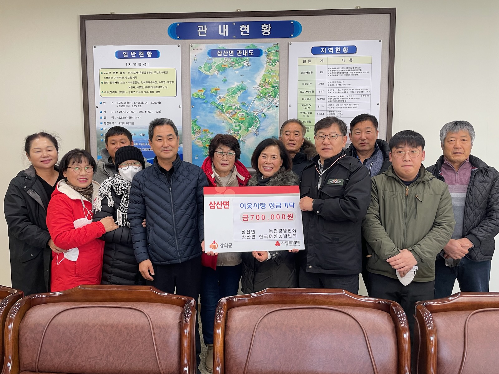 삼산면 농업경영인회(회장 황효상)와 한국여성농업인회(회장 엄순자)에서 면사무소를 방문해 코로나19와 한파로 힘든 취약계층을 위해 사용해 달라며 성금 70만 원을 기탁했다.