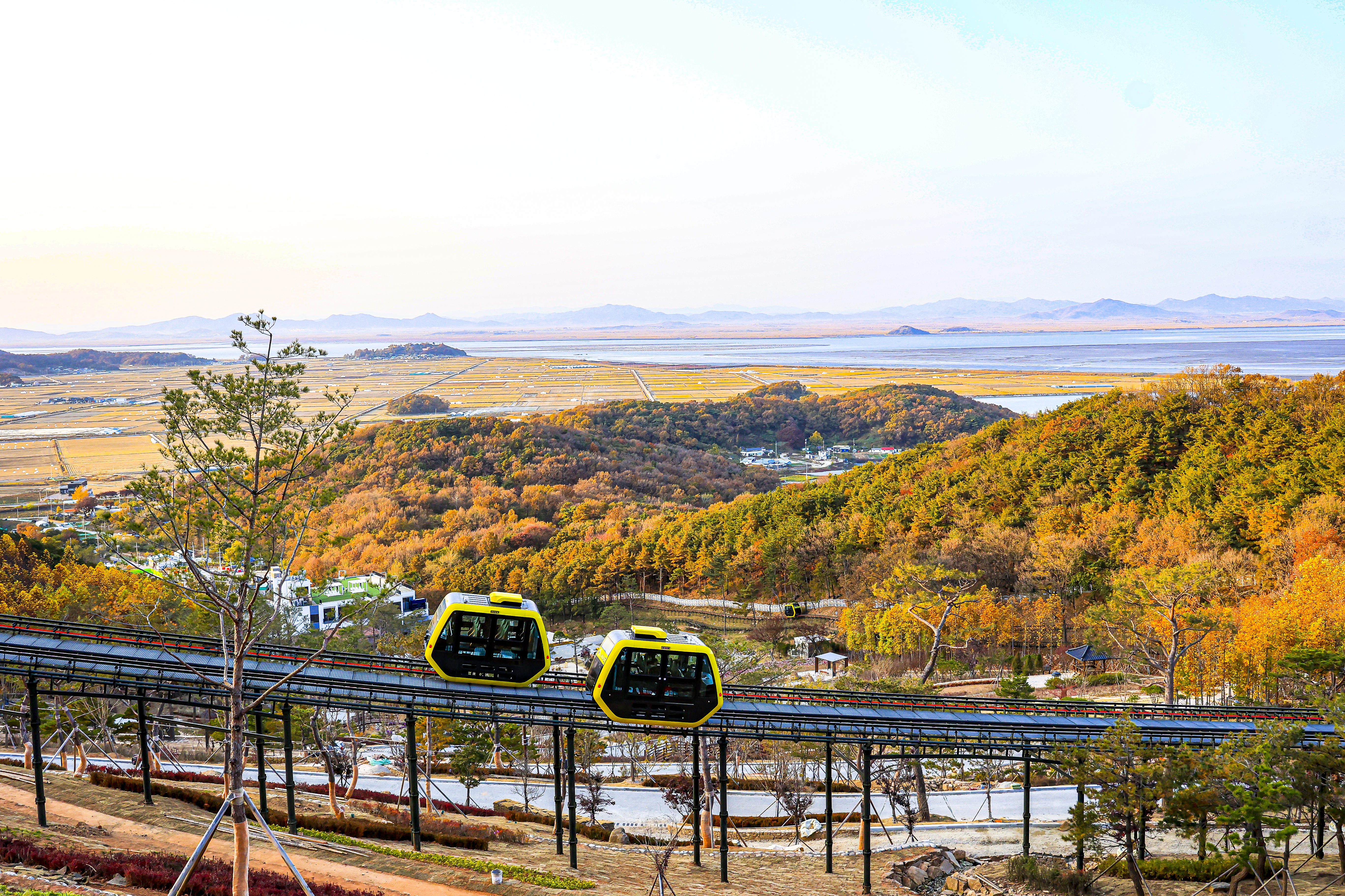 화개정원 스카이워크 전망대에서는 한강하구 서해 바다의 아름다운 풍경과 북녘 땅에 흐르는 예성강을 따라 펼쳐진 연백평야를 한눈에 담을 수 있다. 정원입구에서 전망대까지 모노레일로 편하게 이동하며, 화개정원의 빼어난 풍광을 즐길 수 있다.