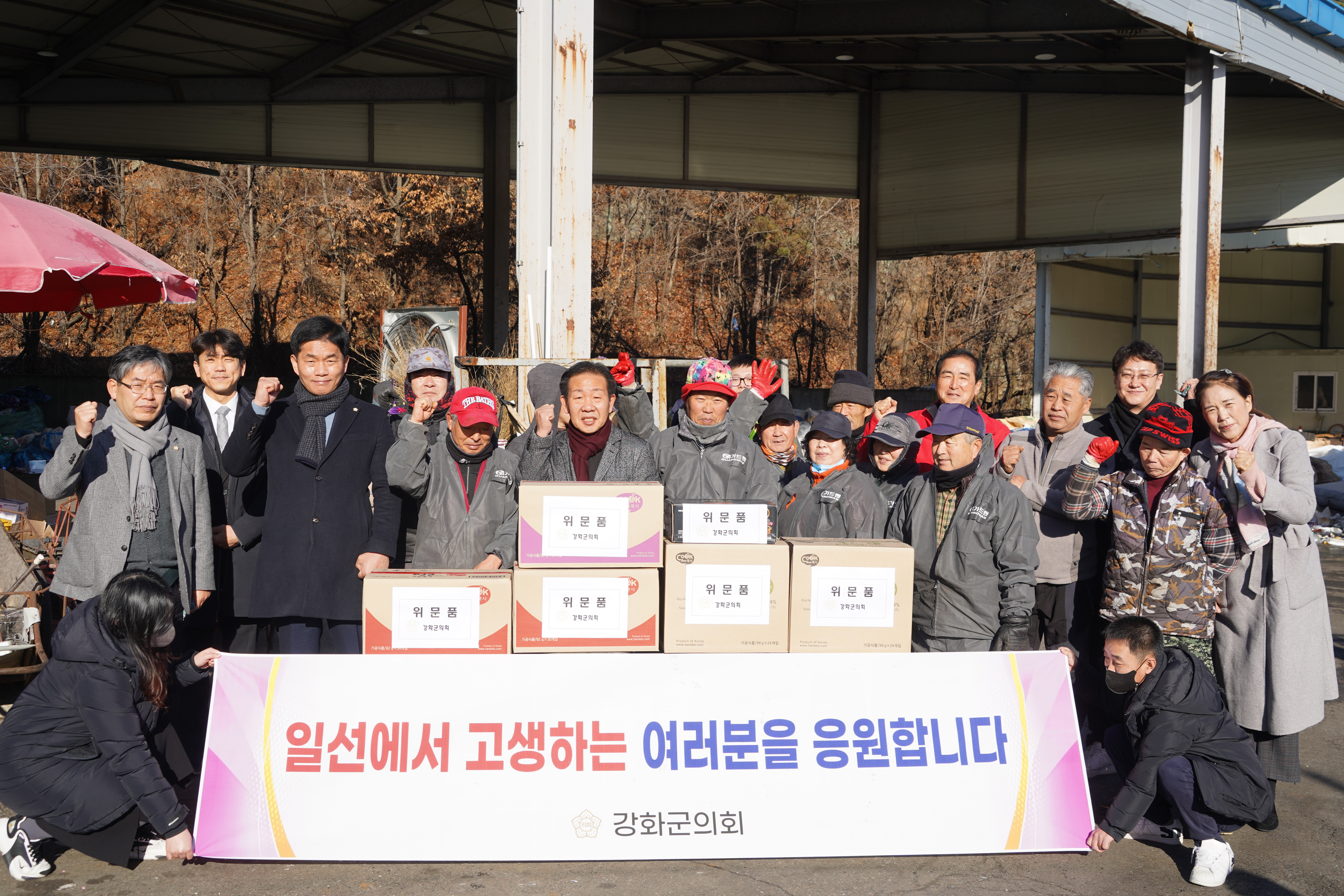 강화군 도로 보수원 대기실에는 강화 전체의 도로를 관리하는 7명의 직원들이 군민들의 안전사고 및 도로 환경 개선에 애쓰고 있으며, 생활폐기물 소각장에는 20명의 직원들이 쾌적하고 아름다운 강화 만들기에 힘쓰고 있다. 이에 강화군의회는 쌀국수, 과일 등 위문품을 전달하고 격려하는 시간을 가졌다.