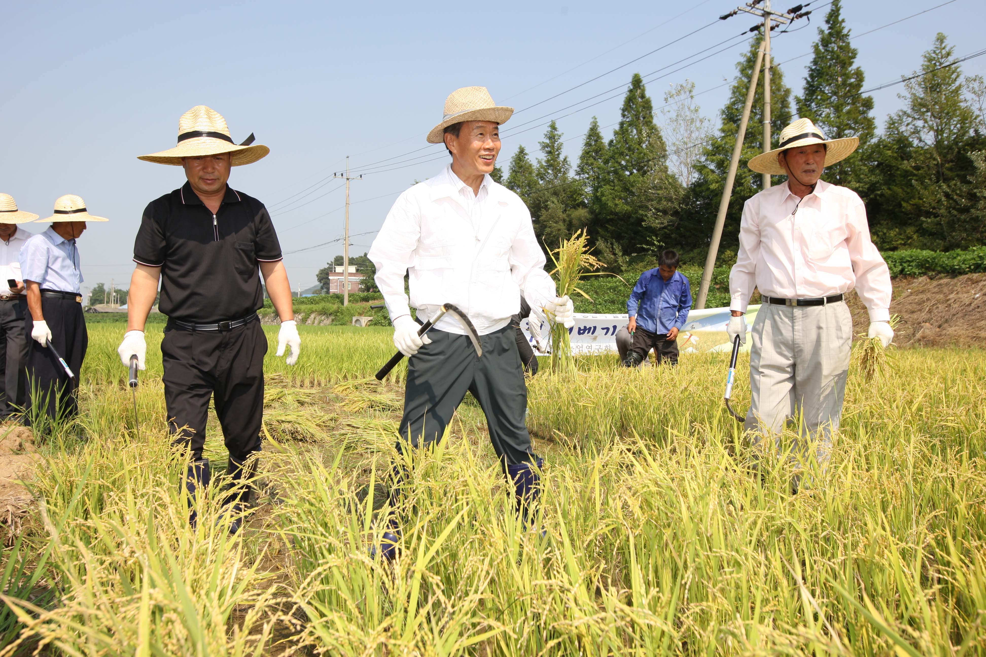 이날 첫 벼베기 행사는 하점면 삼거리 고찬진(52세)씨의 논 100평에서 이뤄졌다.