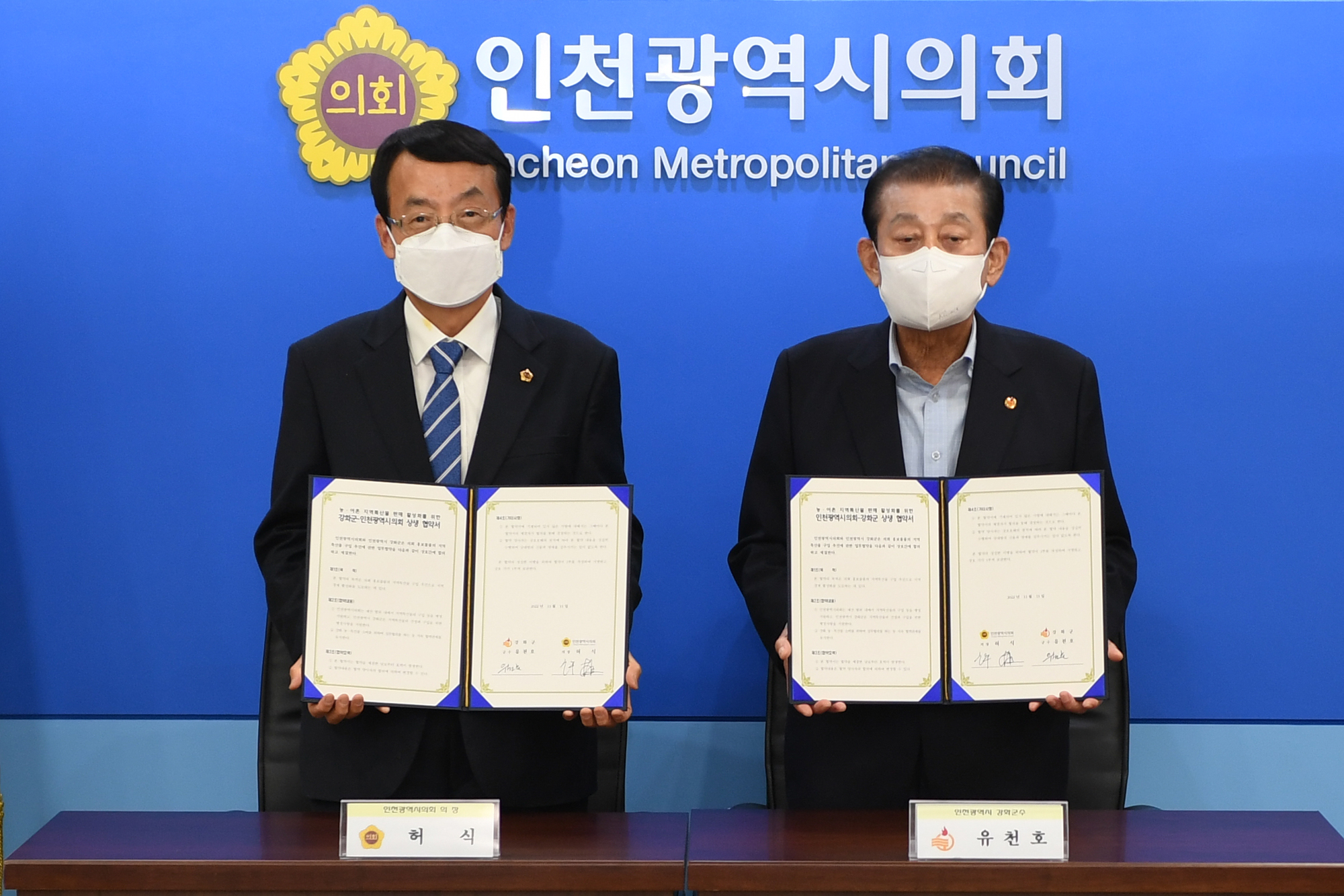 강화군과 인천시의회(허식 의장)가 농어촌지역 활성화를 위해 시의회에서 지역특산품을 우선 구매하고 홍보하는 내용의 업무협약을 지난 11월 체결했다.