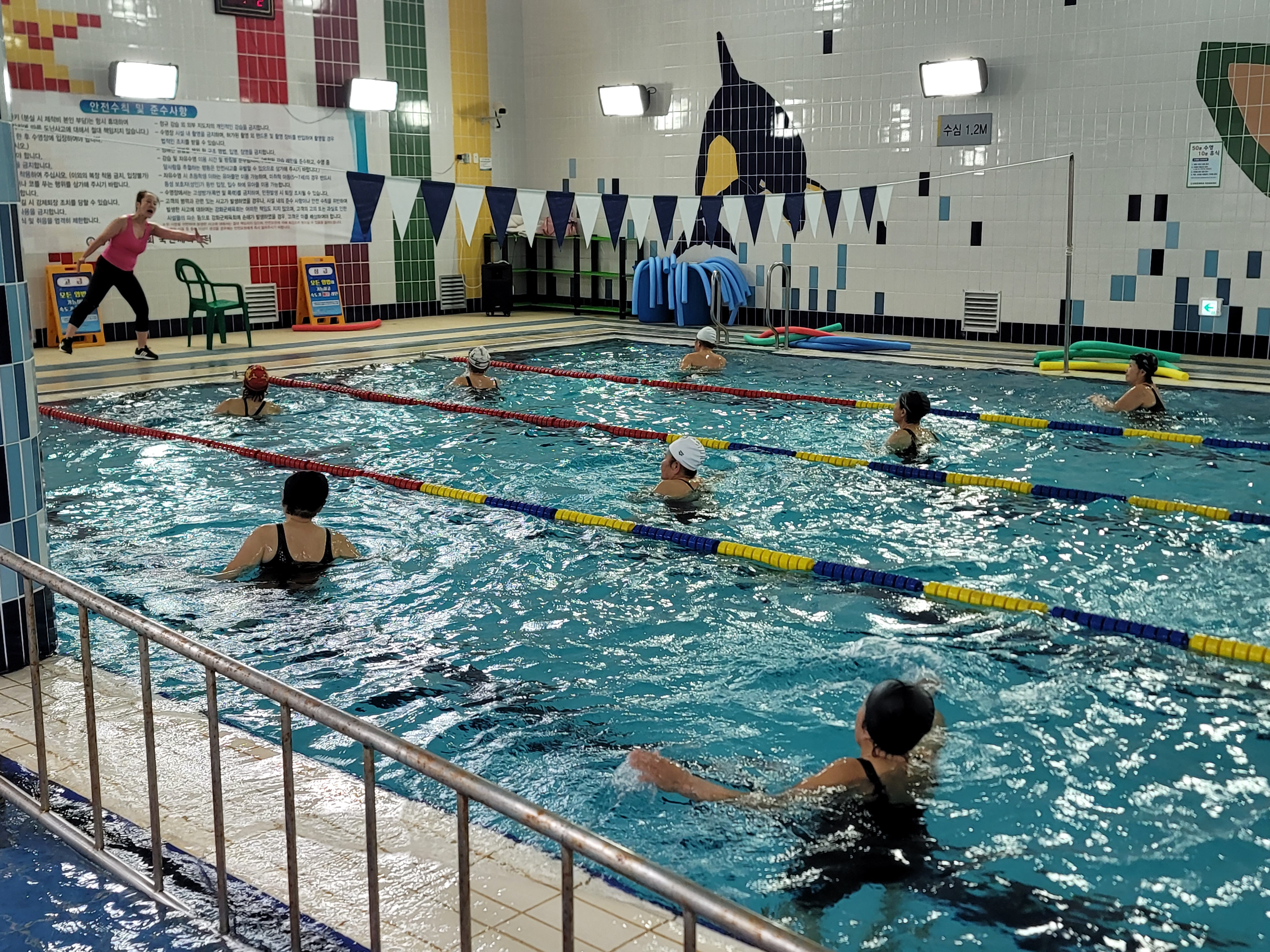 노인 수중운동교실은 수영 전문 강사와 안전요원을 배치하여 아쿠아로빅, 수중 걷기, 근관절운동 등을 진행한다. 어르신들의 관절질환 예방, 심폐기능 및 신체기능 향상, 노화 예방 등에 효과적으로 주 3회(월, 수, 금) 60분씩 수업이 운영된다.