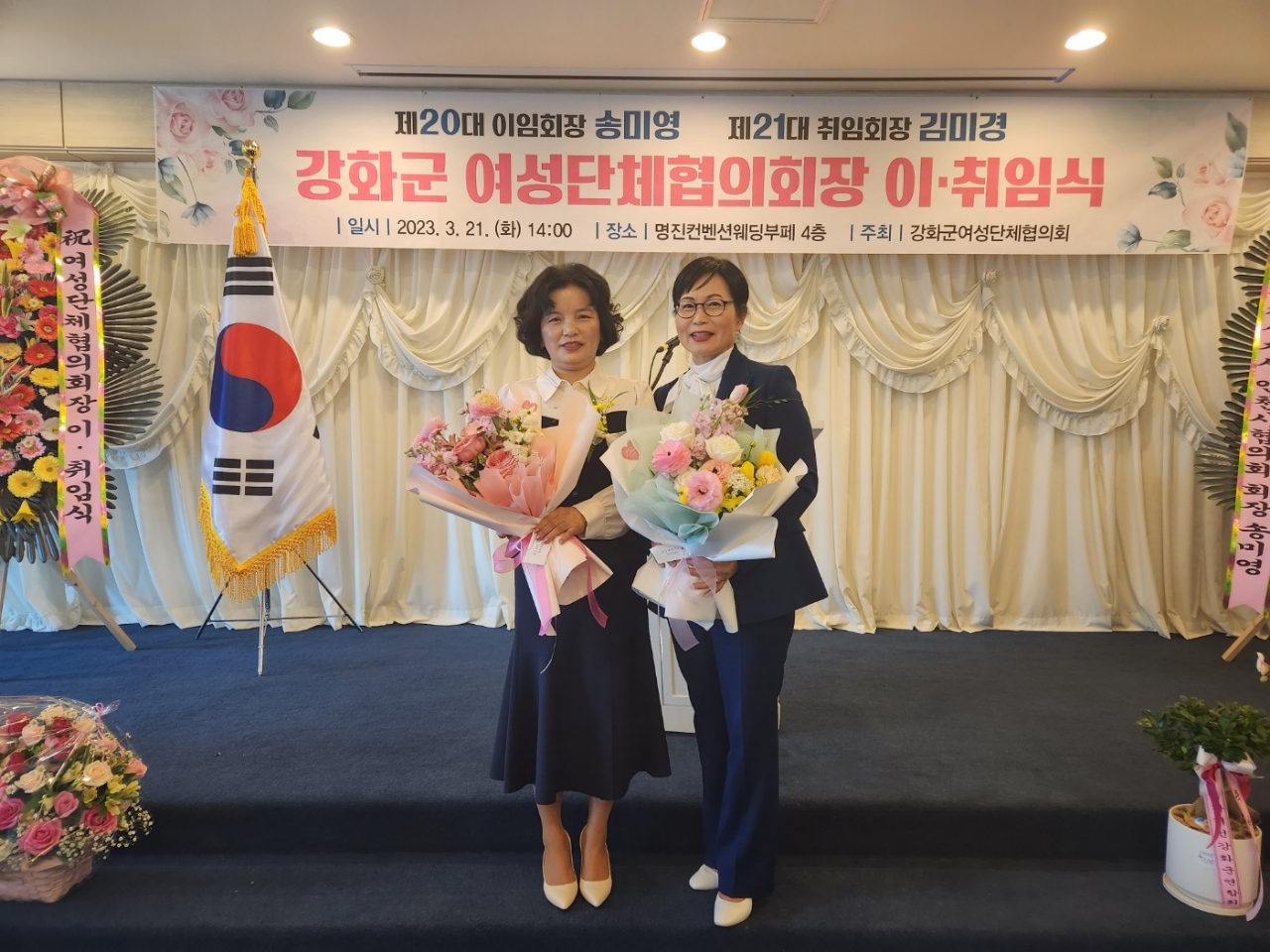 강화군여성단체협의회는 지난 21일 오후 명진컨벤션웨딩부페에서 제20,21대 강화군 여성단체협의회장 이·취임식을 개최했다.