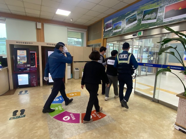 강화군(군수 유천호)은 24일 군청 민원실에서 강화경찰서(심도지구대)와 합동으로 민원응대 과정에서 발생할 수 있는 ‘특이민원 비상상황 대비 모의 훈련’을 실시했다.