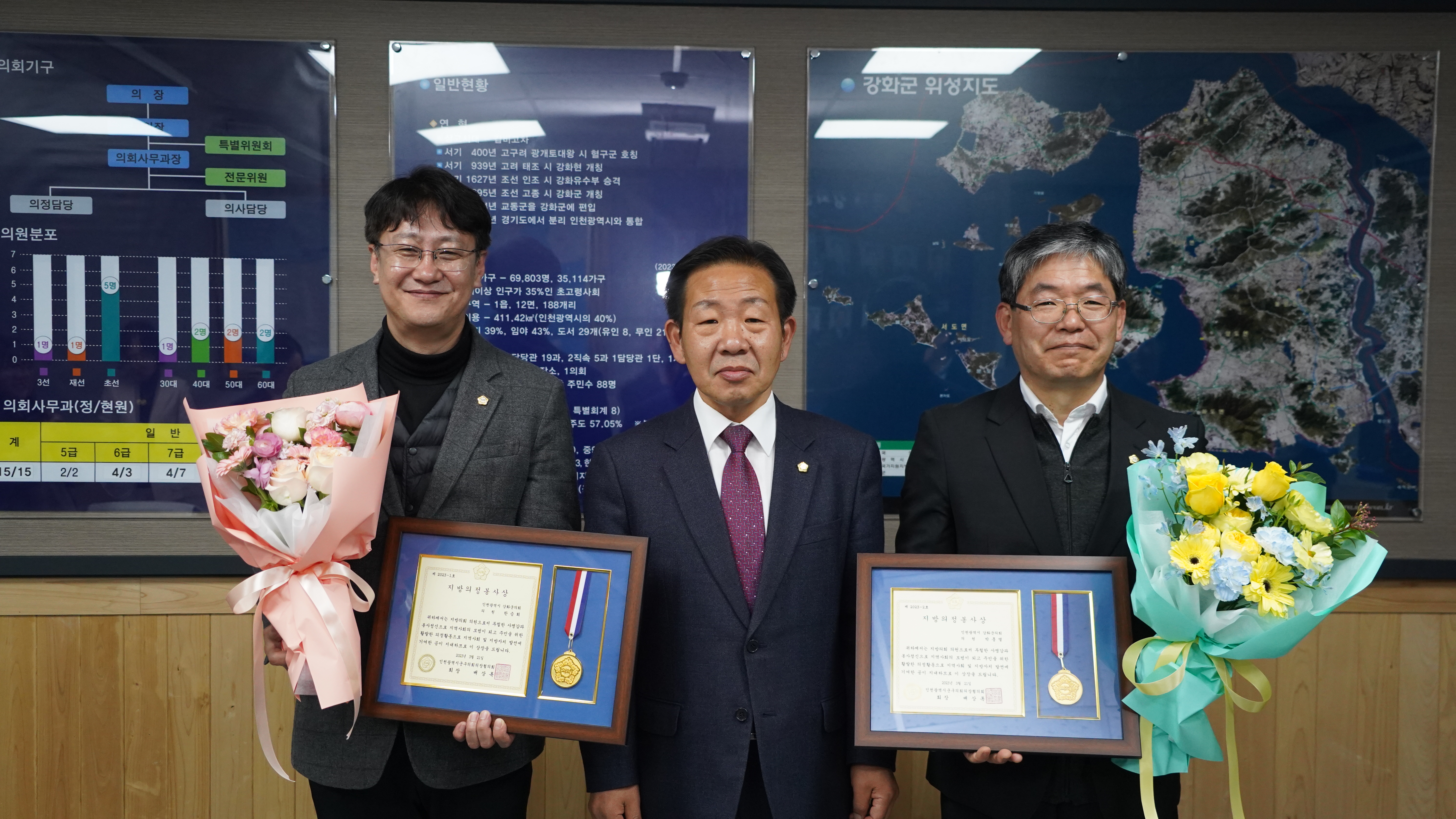 강화군의회 오현식, 한승희, 박흥열 의원이 29일 대한민국시군자치구의회의장협의회 및 인천광역시군구의회의장협의회로부터 지방의정봉사상을 받았다.