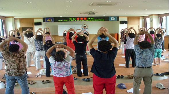 교육내용은 한의학적 기초지식교육 및 예방법, 관절염 타이치운동 등의 프 로그램을 운영한다.