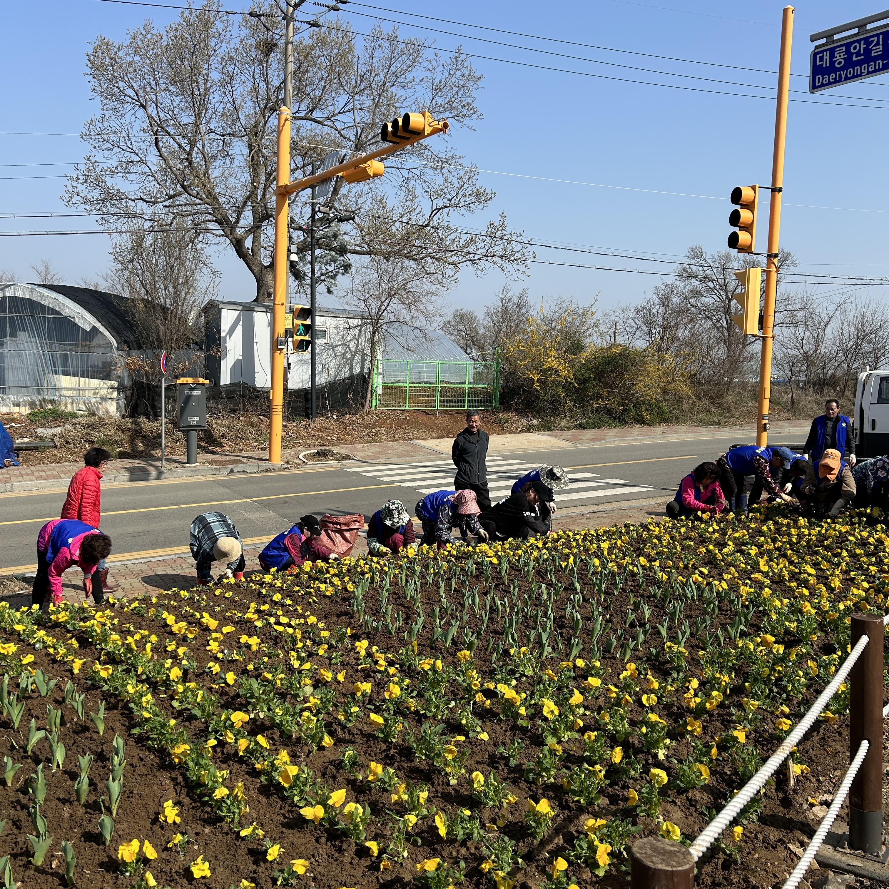 교동면 주민자치위원회·바르게살기위원회, 봄꽃 식재