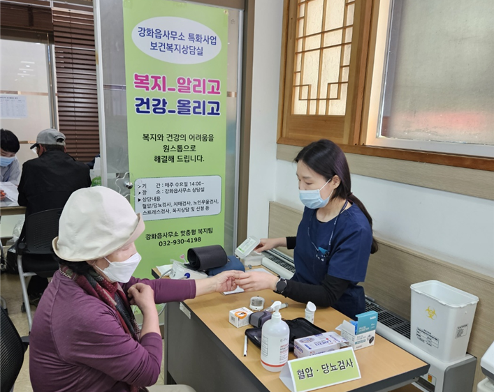 대상자는 강화읍에 거주하는 모든 주민이며, 다양한 보건·복지욕구를 파악해 서비스를 진행한다. 혈압, 당뇨, 콜레스테롤과 같은 건강 검사와 더불어 기초생활보장, 긴급복지, 바우처 등 복지 상담이 동시에 진행된다.