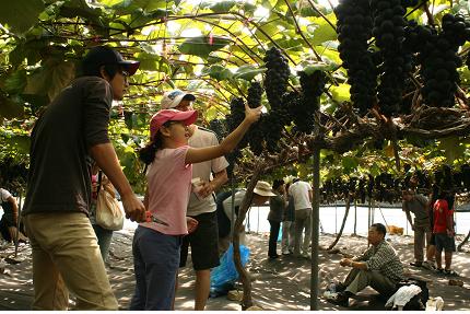 (사진은 한 가족이 포도 따먹기 체험행사에 참가해 직접 포도를 따고 있다)