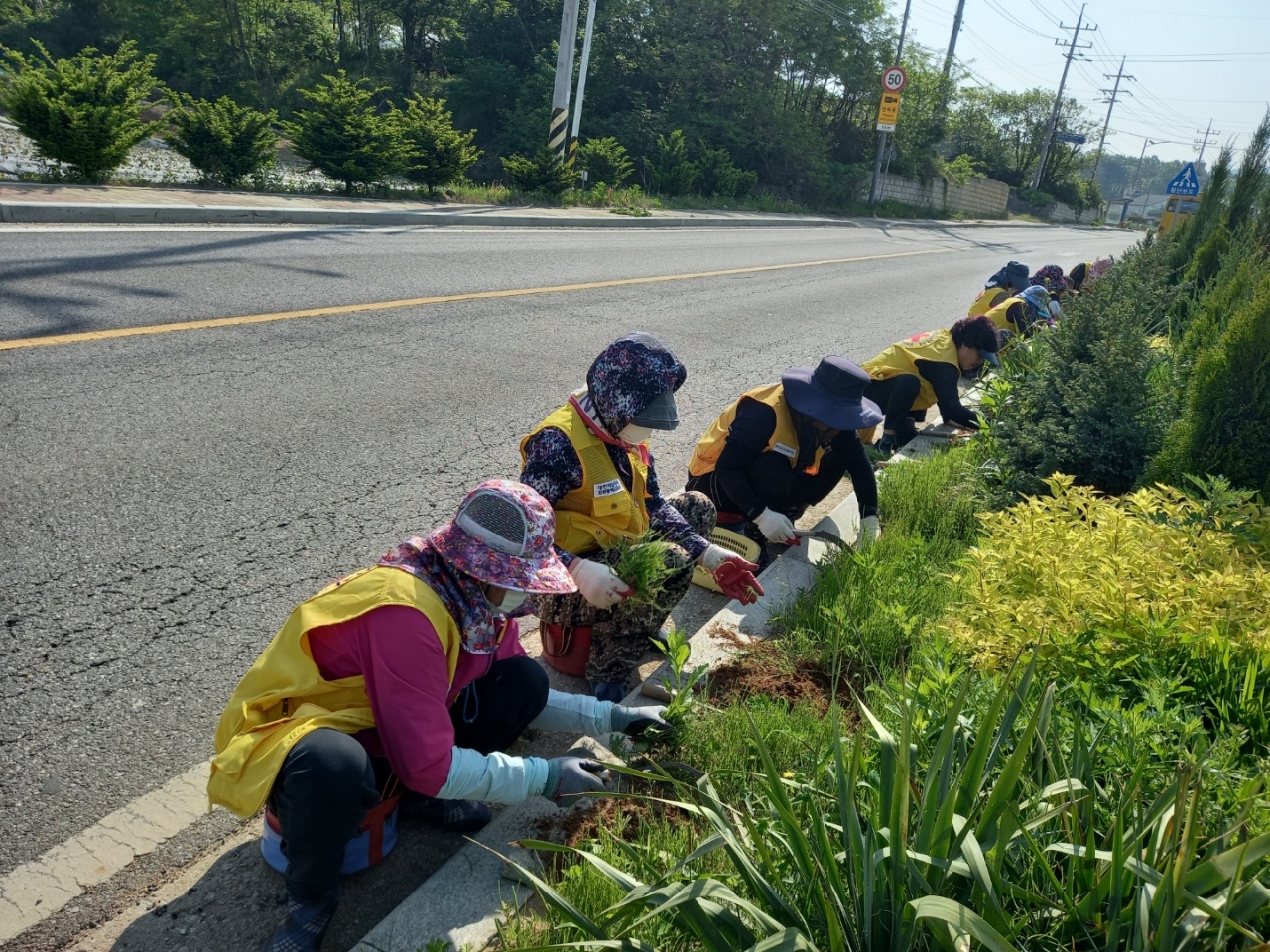 양도면 적십자부녀회, 인산리 황골 가로화단 제초작업 실시