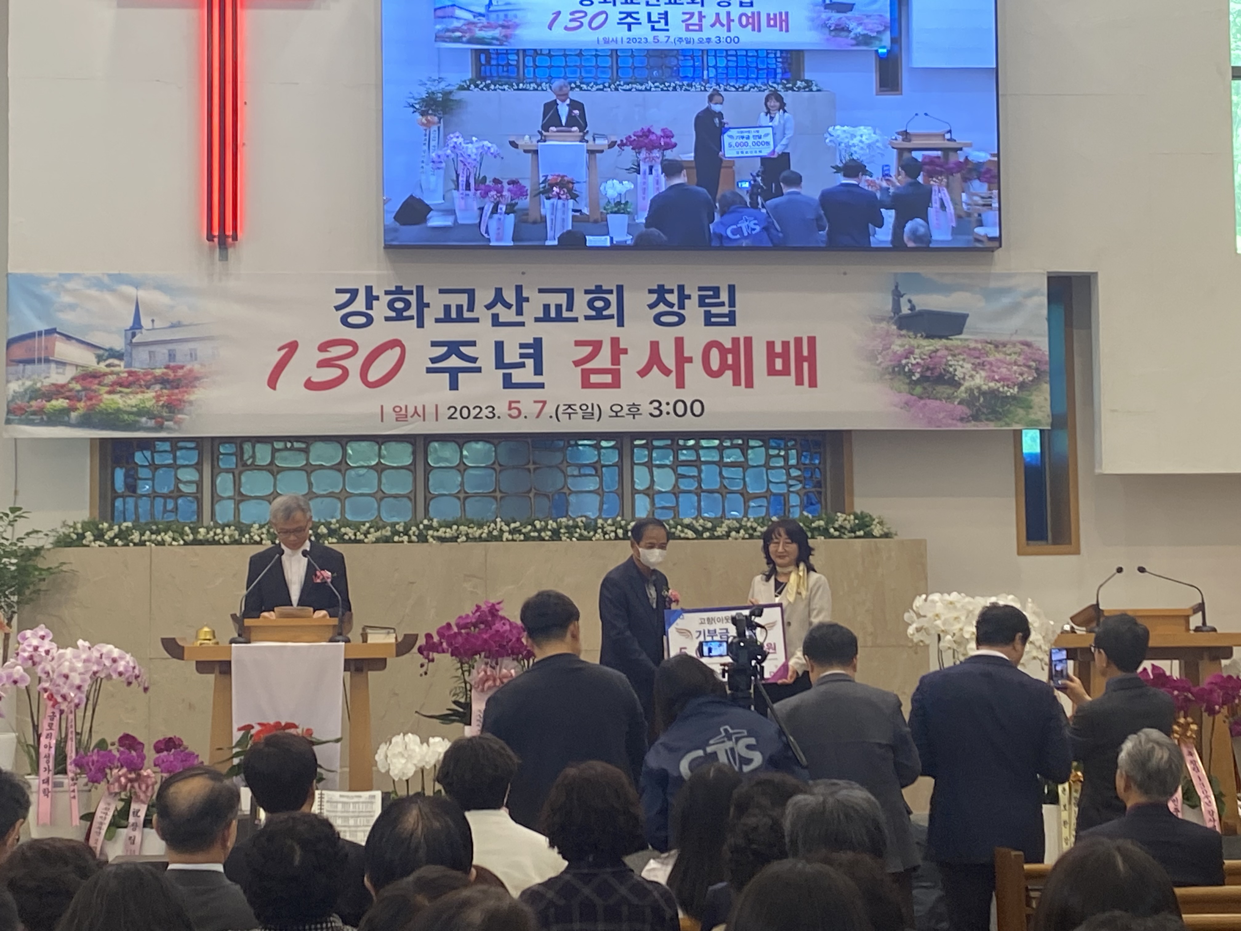 이에 이지영 양사면장은 “강화 전 지역의 복음화에 교두보 역할을 담당했던 강화교산교회의 창립 130주년을 진심으로 축하드린다. 교산교회가 가지고 있는 역사적 의미를 되새기며, 지역사회 복지를 위해 꼭 필요한 곳에 전달하겠다.”라고 화답했다.