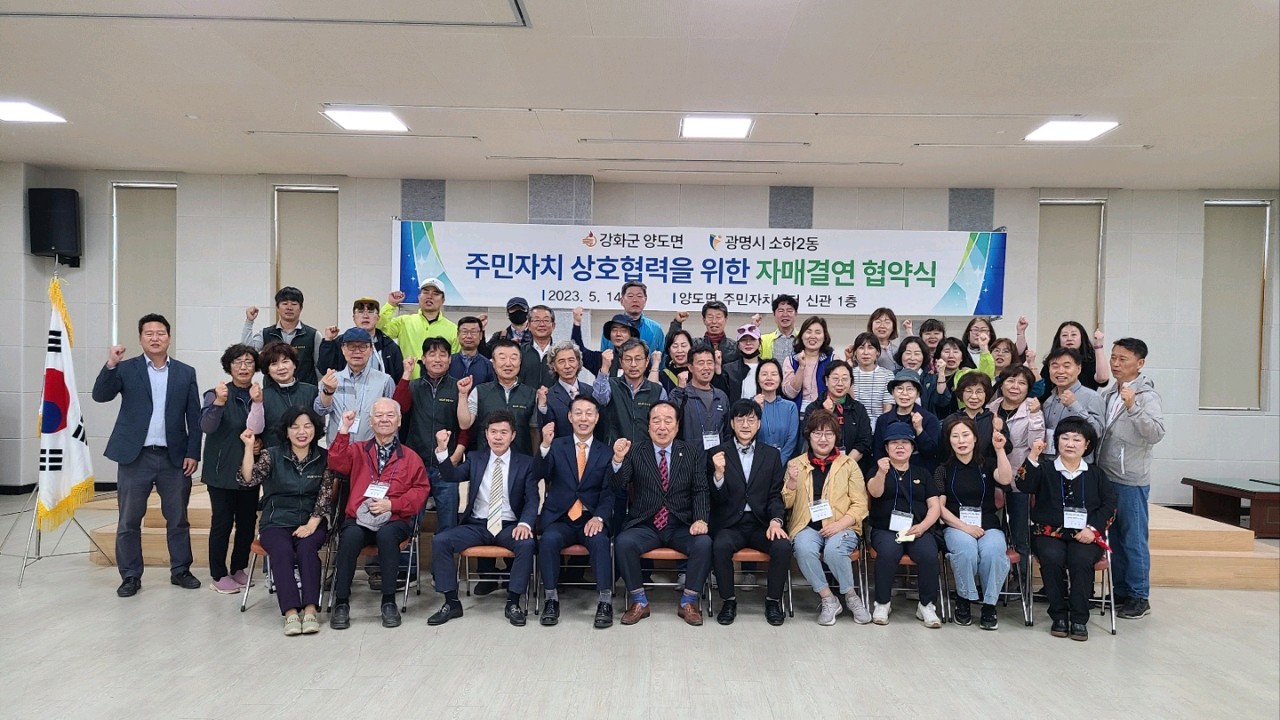 강화군 양도면 주민자치위원회(위원장 이달용)와 부천시 소하2동 주민자치회가 지난 14일 양도면 주민자치센터에서 도‧농 교류 활성화를 위한 자매결연 협약식을 체결했다.