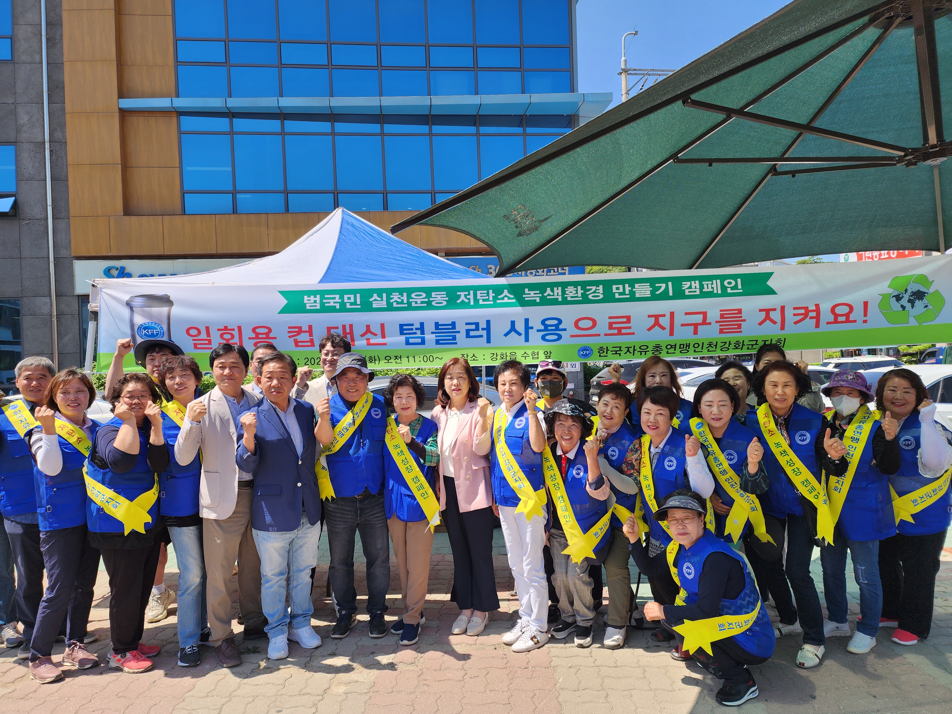 한국자유총연맹 강화군지회(회장 박봉식)는 23일 강화읍 수협 앞에서 온실가스 줄이기 위한 “저탄소 녹색성장 및 자원순환 실천운동 캠페인”을 펼쳤다.