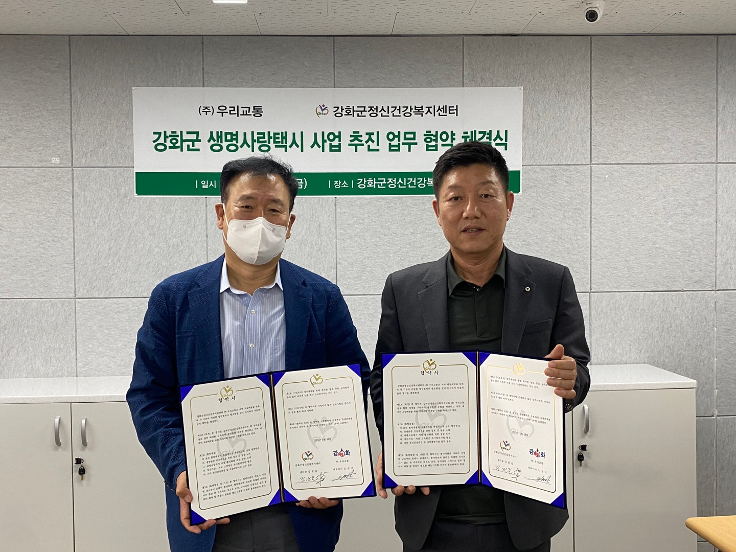강화군정신건강복지센터(센터장 김원길)는 지난 26일 ㈜우리교통(대표이사 오성국)과 ‘생명사랑택시’ 사업을 추진을 위한 업무협약을 체결했다.