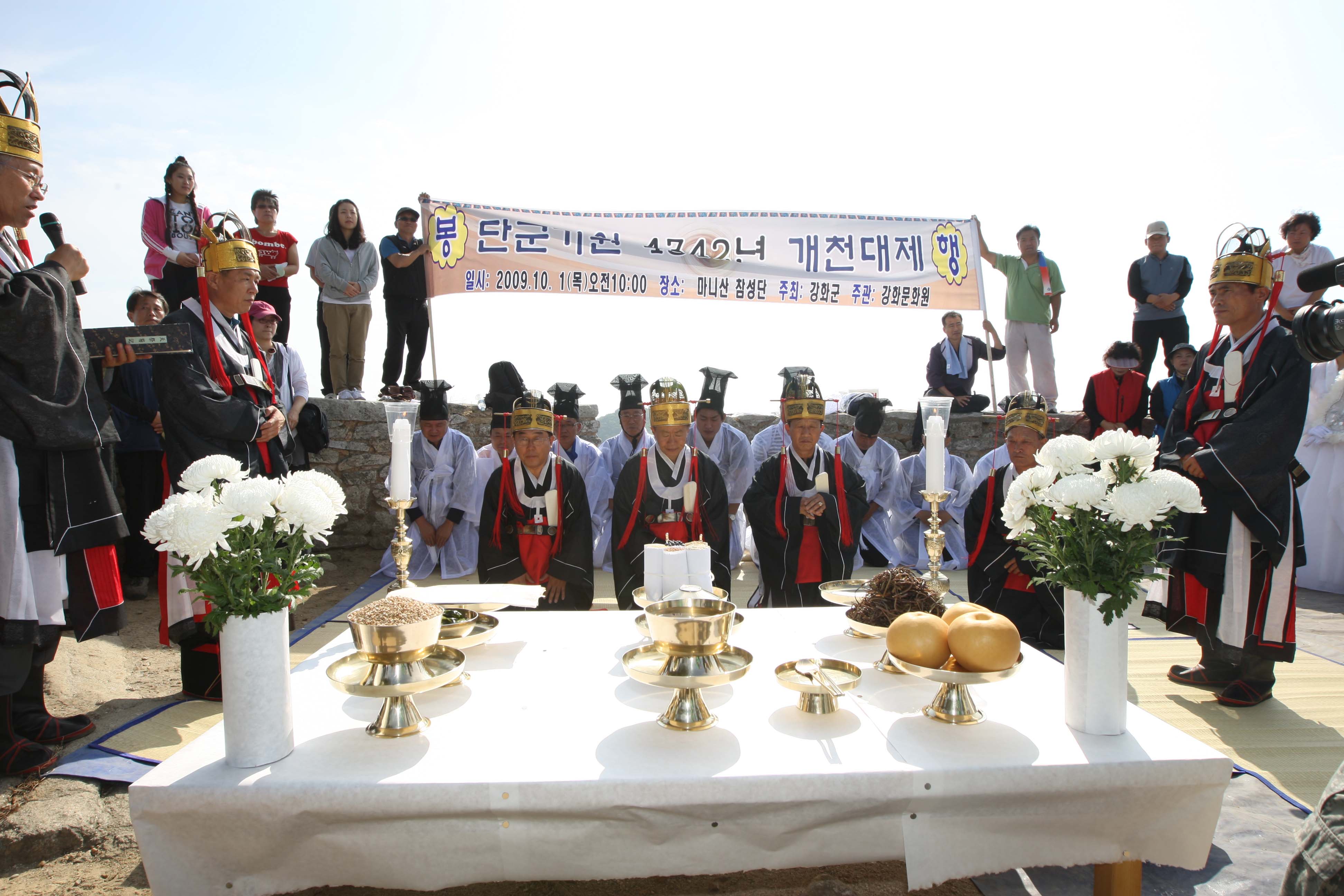 민족의 영산 강화도 마니산 참성단에서는 강화군 주관으로 지난 1일 단기 4342년을 맞아 강화유림과 관광객등 300여명이 모인 가운데 개천대제가 봉행됐다.
