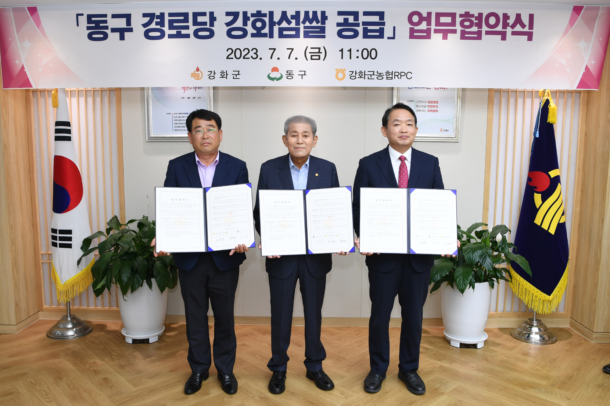 강화군(군수 유천호)과 인천 동구는 7일 ‘동구 경로당 강화섬쌀 공급’을 위한 업무협약식을 개최했다.