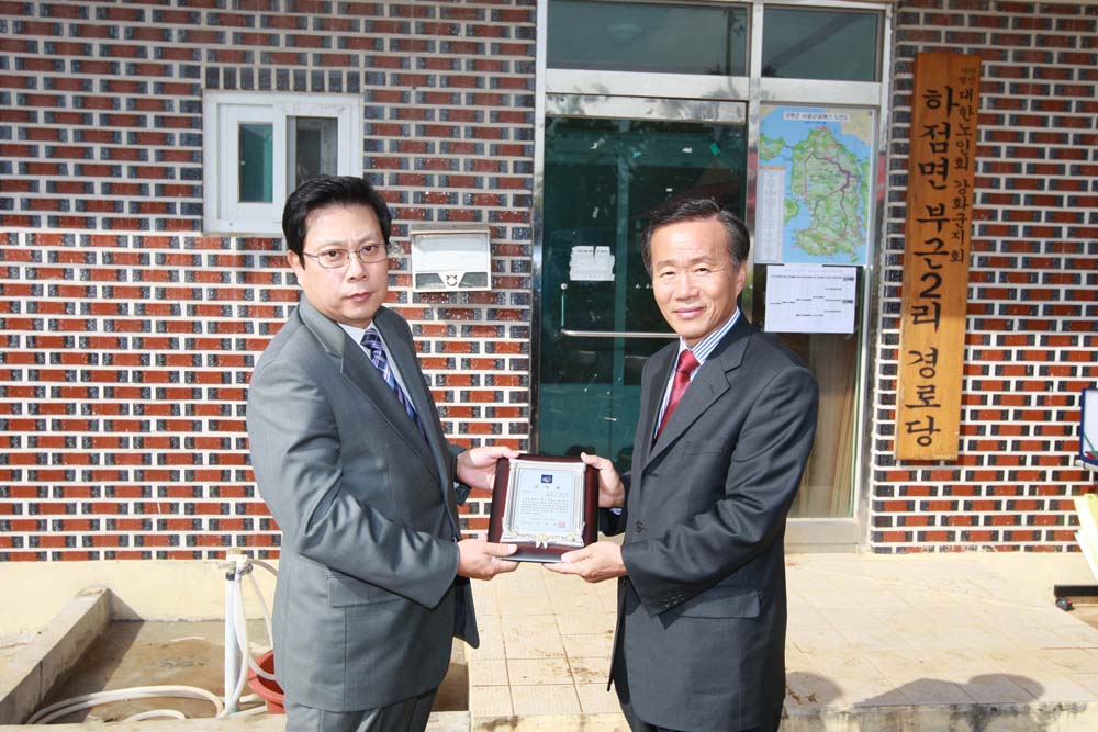 강화군(군수 안덕수)은 지난 17일 하점면 부근2리 마을회관에서 진흥기업(대표 김영진)에 감사패를 전달했다.