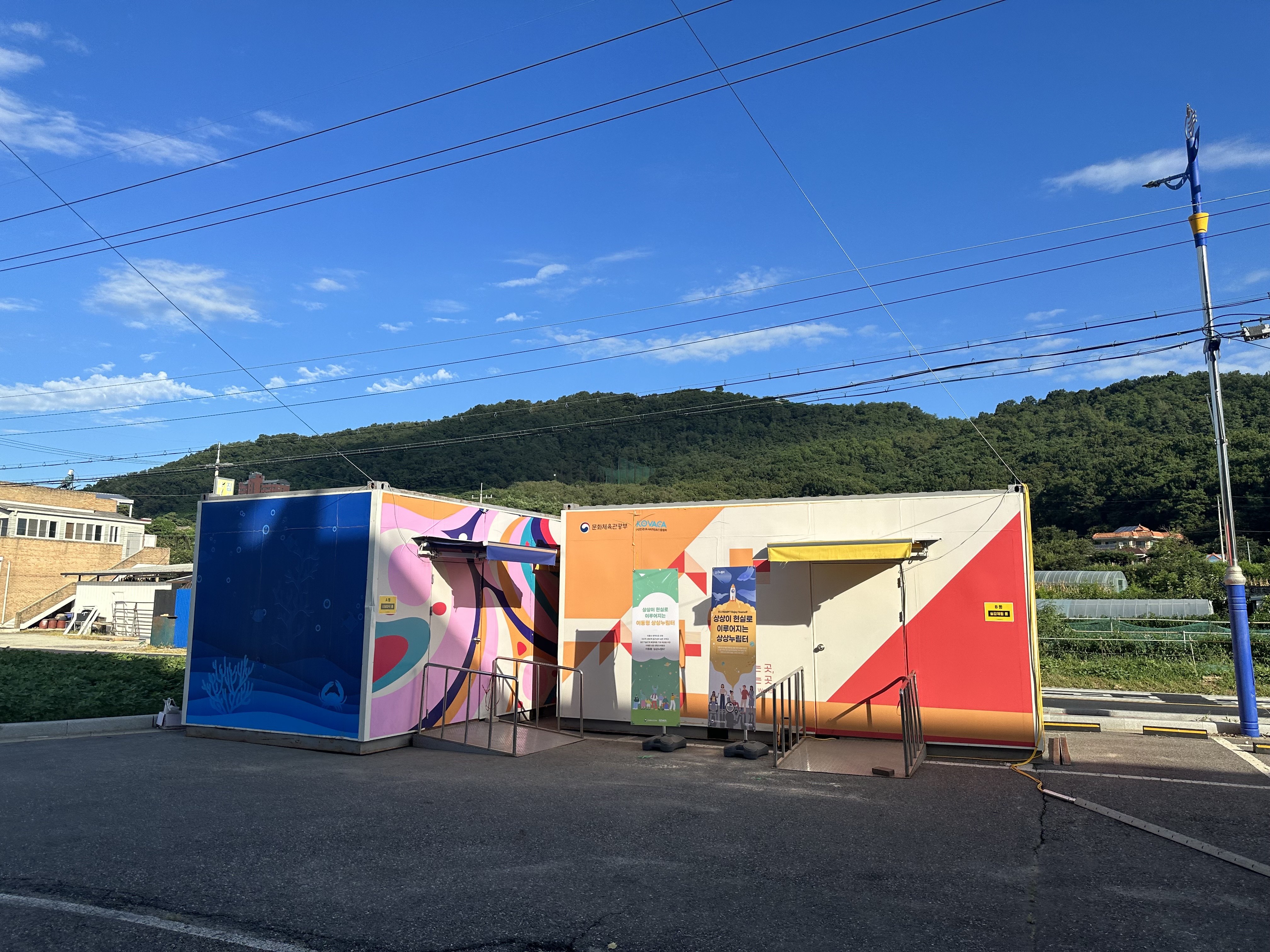 체험관은 복지관 앞 주차장에서 A동과 B동 2개의 부스로 운영했다. A동은 아쿠아리움, 해변, 해저동굴 등 총 5종의 시네마틱 영상을 3면으로 생생하게 감상할 수 있었고, B동은 VR(가상현실) 장비를 착용해 시각 및 지체장애인의 일상생활을 간접적으로 체험해 볼 수 있는 기회를 제공했다.