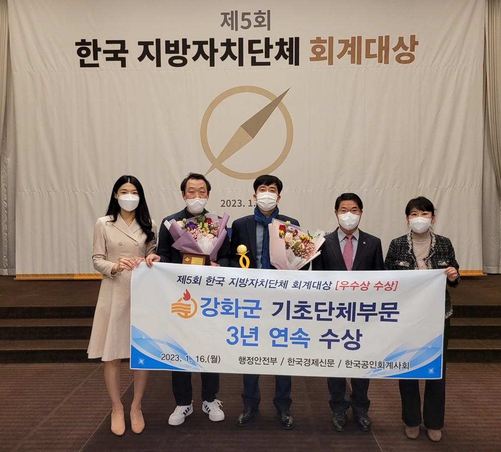 한편, 강화군은 `20~`22년 3년 연속 전국 243개 지자체 중 행정안전부, 한국경제신문, 한국공인회계사회가 공동으로 평가 시상하는 회계 대상을 수상하여(우수 1회, 장려 2회) 재정운영에 있어 투명성과 건전성을 대외적으로 널리 인정받고 있다. 또한, 지난 7월 ‘2022 회계연도 한눈에 보는 강화군 살림살이 책자’를 발간했다.