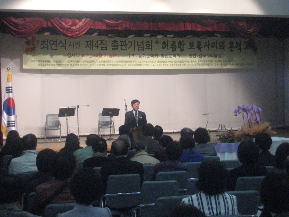 지난 24일 김포시 월곶면에 위치한 김포청소년수련원 강당에서는 최연식 시인의 4번째 시집 '허름한 보폭 사이의 흔적'(화남출판사) 출판기념회가 열렸다.