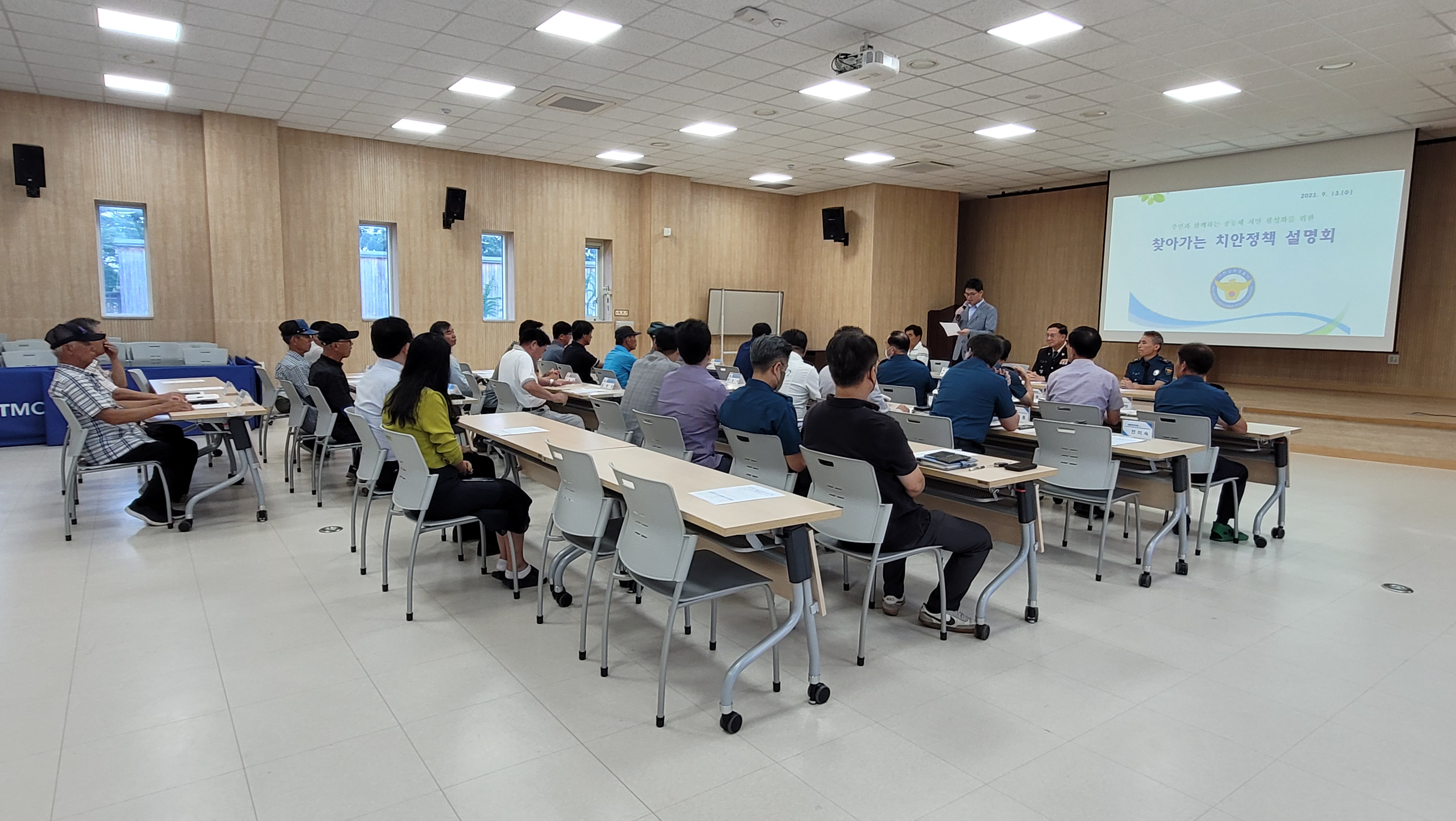이연승 단장은 “바쁘신 와중에 참석하여 주신 이장님과 오늘 치안 정책 설명회를 개최해 주신 강화경찰서 관계자분들에게 감사의 말씀을 드린다”라며, “올해 하반기가 잘 마무리될 수 있도록 하점면 이장단도 주요 군정 사항에 대해 적극 협조할 예정이며 내년 사업도 잘 추진 될 수 있게 하겠다”라고 말했다.