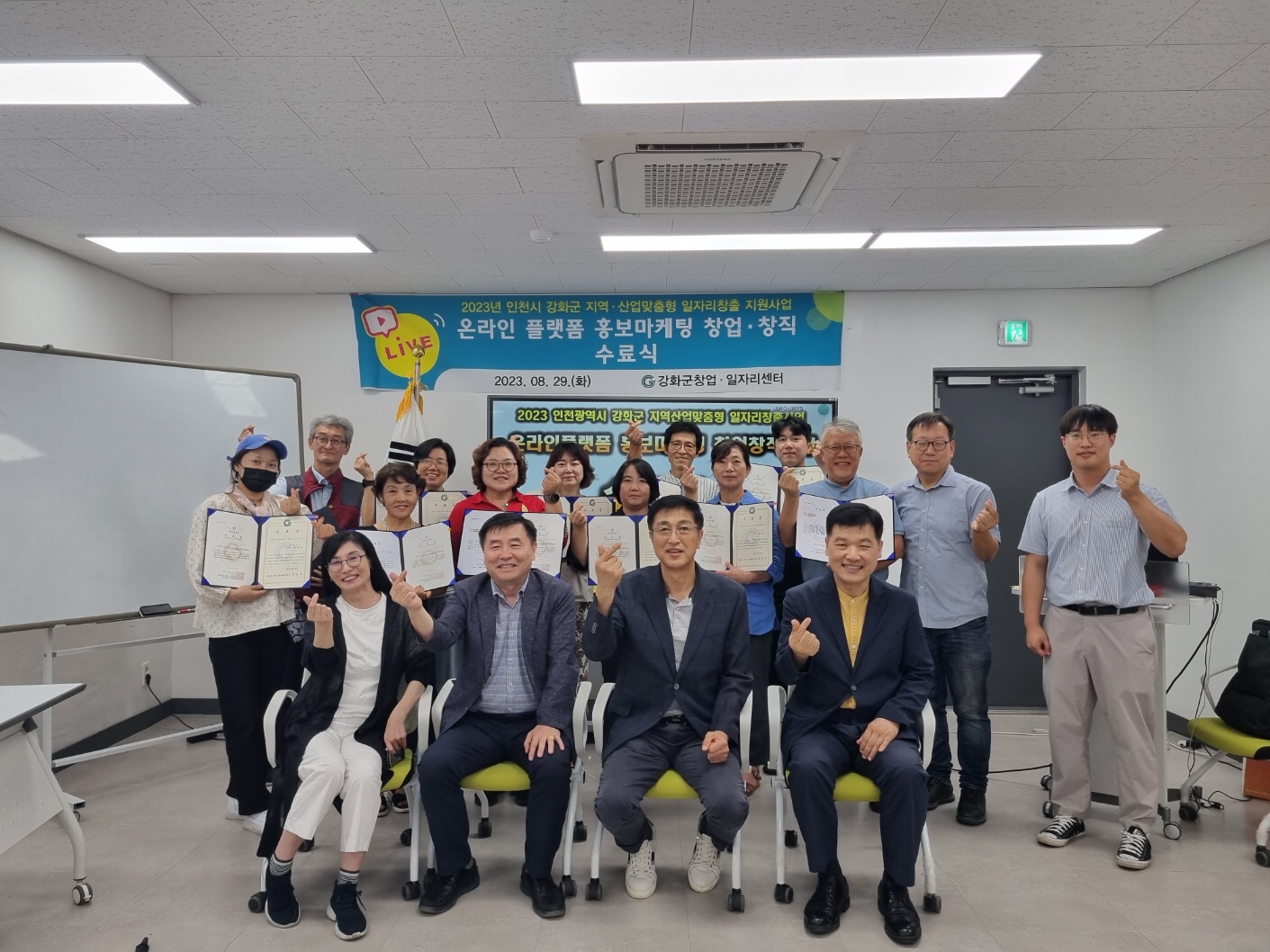 강화군 창업·일자리센터(센터장 윤정혁, 이하 ‘센터’)는 인천광역시·강화군 주관 2023년 지역·산업맞춤형 일자리창출 지원사업 ‘온라인 플랫폼 홍보마케팅 창업·창직’ 수료식을 지난 달 8월 29일 개최했다.