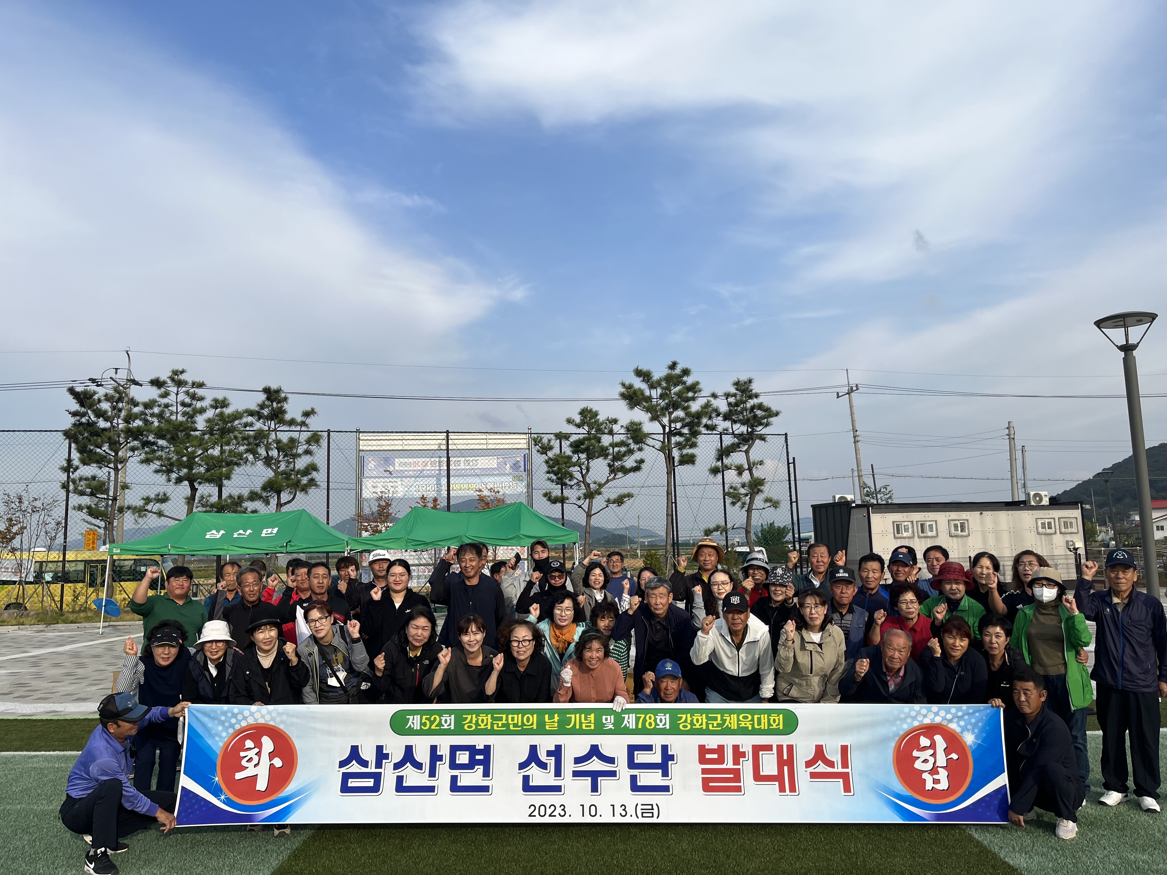강화군 삼산면 체육진흥후원회(회장 김윤태)가 지난 13일 삼산면사무소 다목적운동장에서 제52회 강화군민의 날 기념 및 제78회 강화군 체육대회 준비를 위한 삼산면 선수단 발대식을 개최했다.