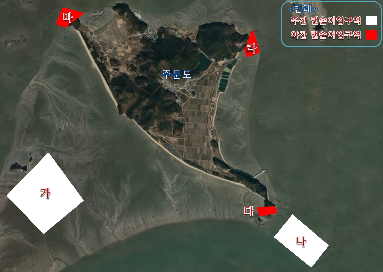 또한, 주문도 맨손어업은 3개 구역(15ha)을 신규로 설정하여 최종 군사협의를 통해 야간조업이 가능해졌으며, 기존 구역(육상해서 2km 구역, 110ha)에서는 여전히 주간조업은 가능하다.
