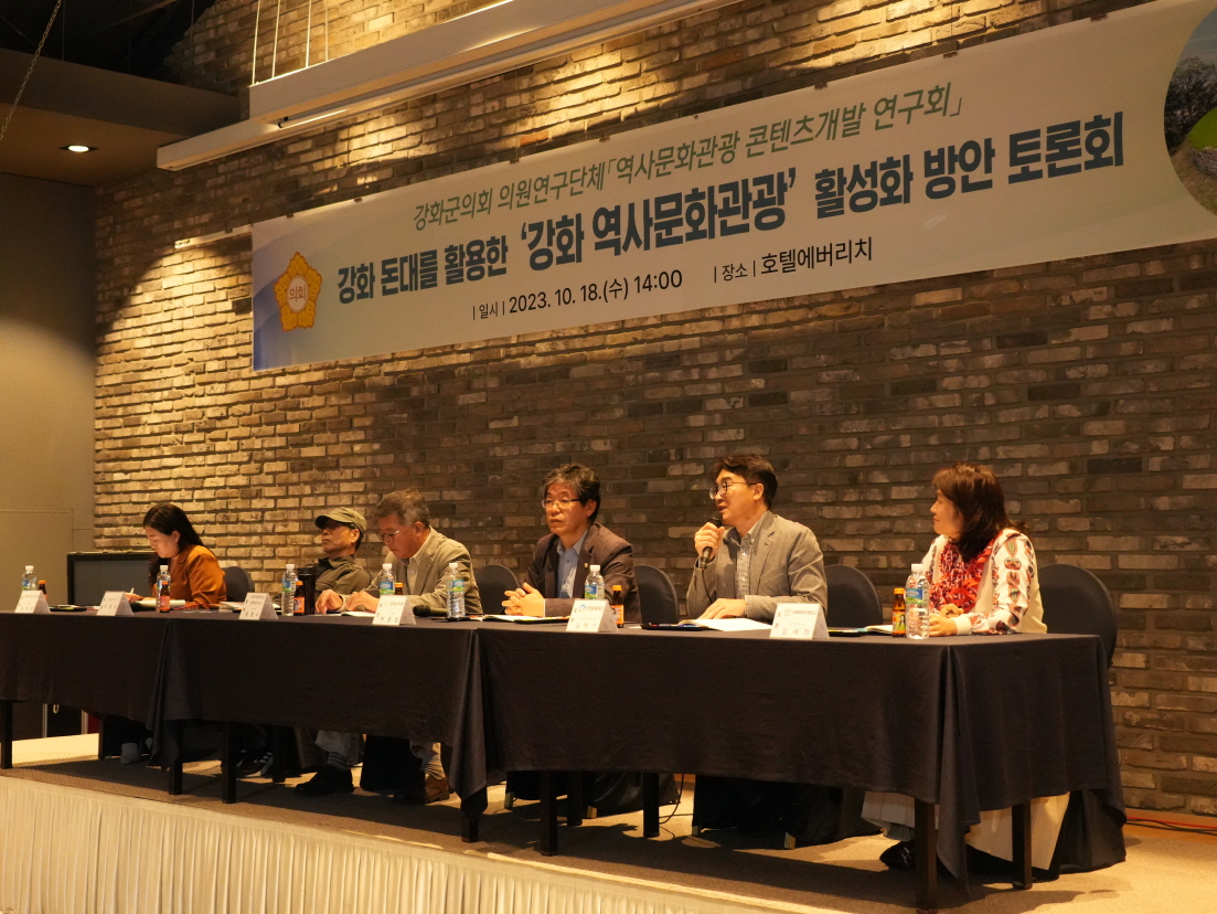 강화군의회(의장 박승한) 역사문화관광 콘텐츠개발 연구회(대표의원 박흥열)가 지난 18일 호텔 에버리치에서 '강화 돈대를 활용한 역사문화관광 활성화 방안 토론회'를 개최했다.