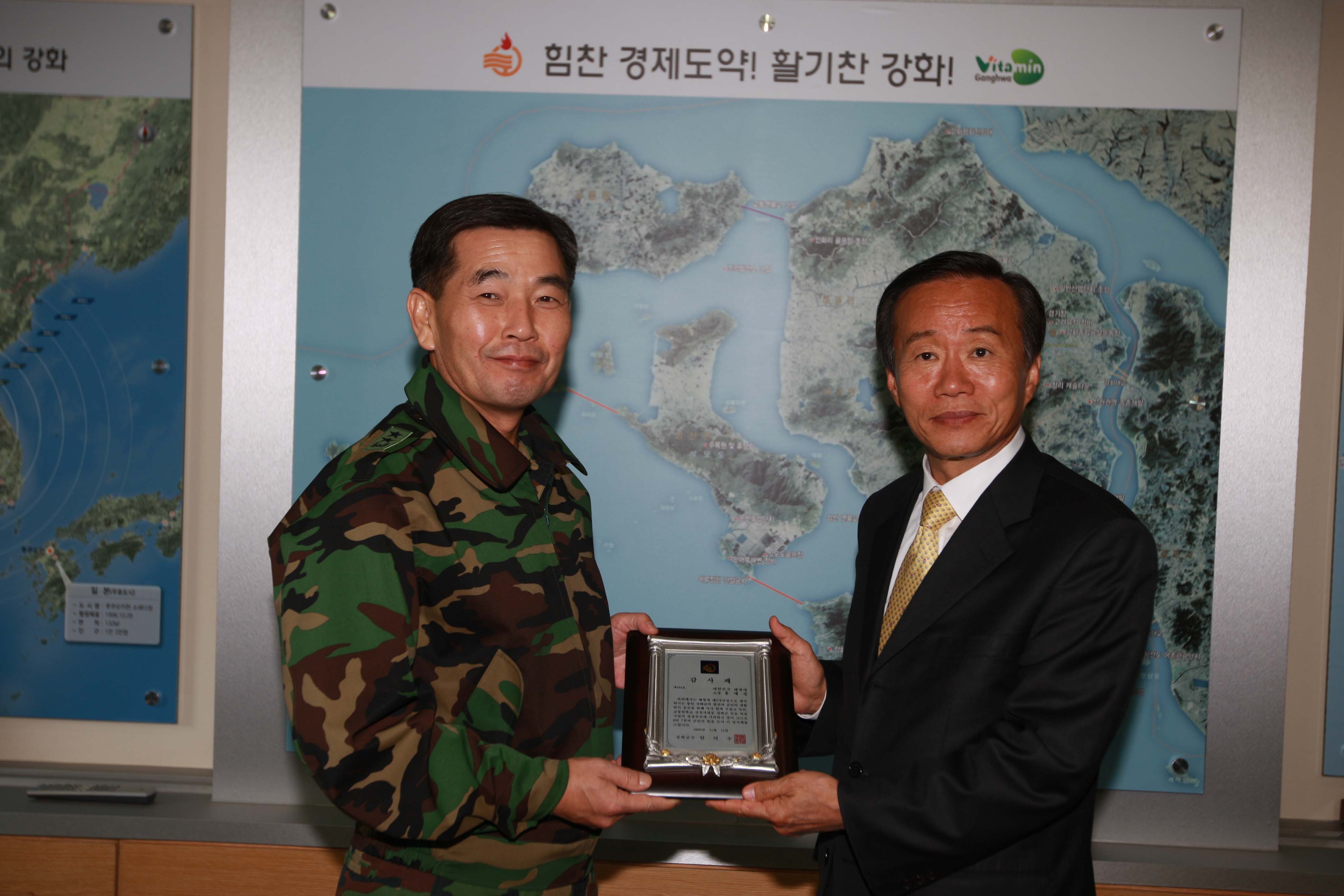 감사패 전달식에서 안덕수 강화군수는 홍 2사단장의 강화군민에 대한 사랑과 고마움을 길이 간직하겠다고 말하고 영전을 군민들과 함께 축하한다고 했다.
