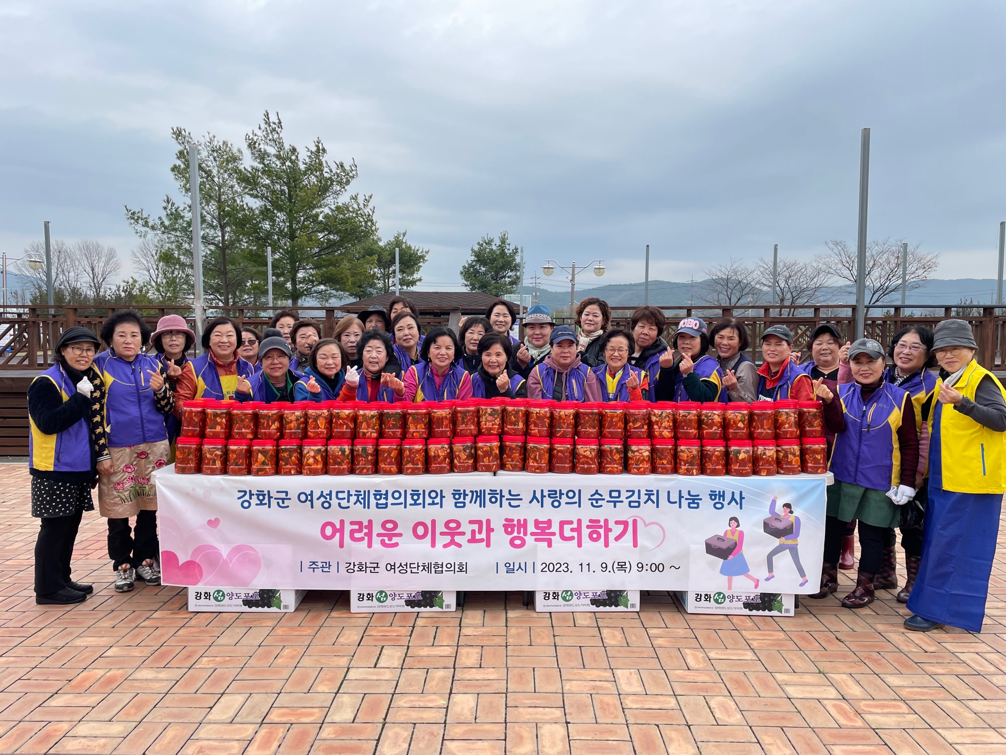 유천호 강화군수는 “점점 추워지는 날씨에 어려운 이웃들을 생각하며 나눔에 앞장서 주신 여성단체협의회 회원들께 감사드린다”며, ”강화군민 모두가 넉넉히 겨울을 보낼 수 있도록 군에서도 지속적으로 노력하겠다.”고 전했다.