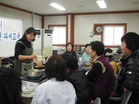 이번 교육은 쌀 소비촉진과 활용방안 모색을 위해서 실시하는 교육으로 쌀을 이용한 대표적인 가공식품인 쌀국수를 이용하여 ‘묵은지쌀국수’, 육수를 이용한 ‘쌀국수’와 ‘카레쌀국수볶음’을 실습해 보고, 최근 식생활 형태의 변화로 인해 음식자체의 미(味)적인 측면뿐만 아니라 시각적, 공간적인 미(美)을 추구하는 욕구가 강해짐에 따라 음식의 시각적 효과를 극대화하고 공간에 어울리는 상차림의 연출하는 푸드코디법을 함께 배웠다.