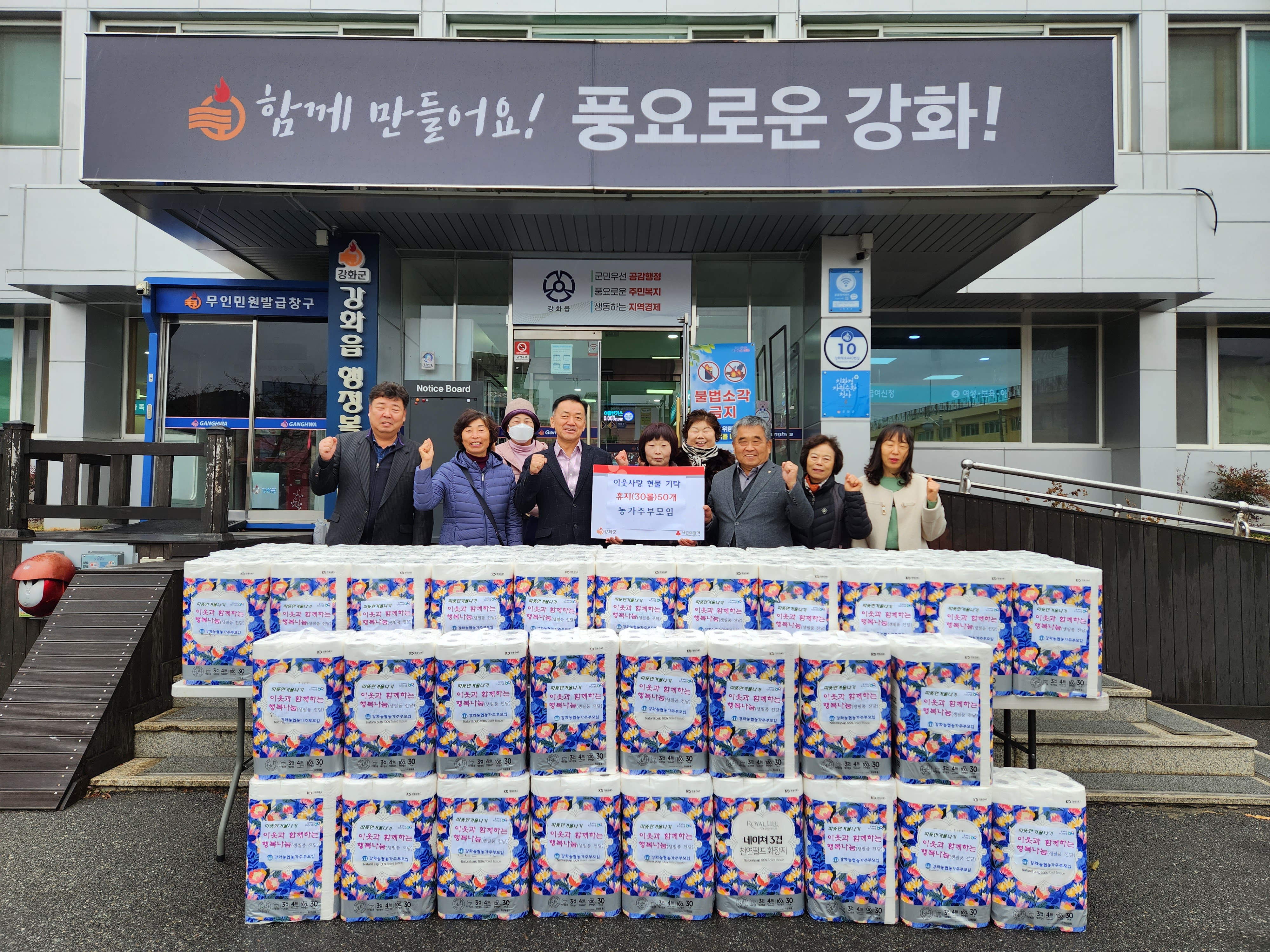 강화농협 농가주부모임, 강화읍에 행복 나눔…롤휴지 기탁