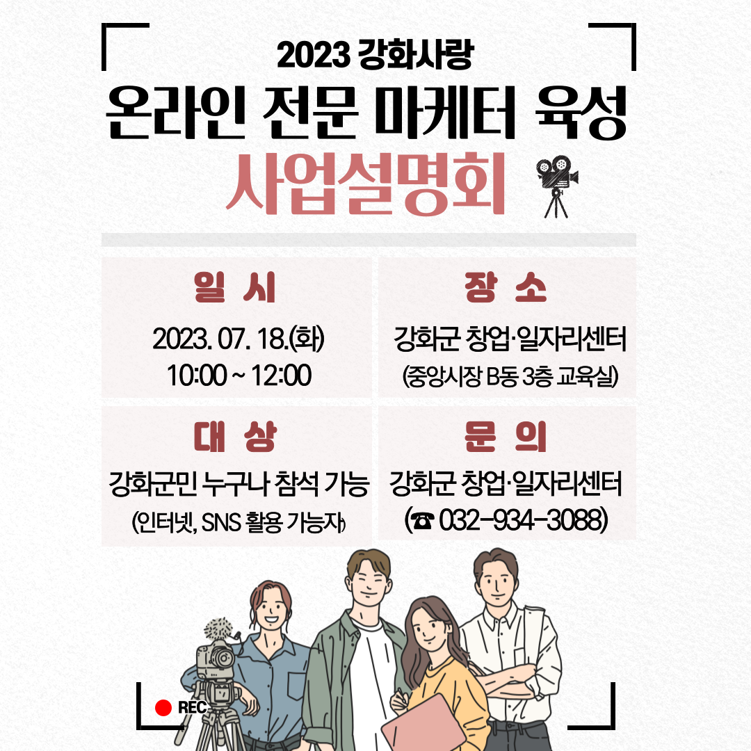 강화군 창업·일자리센터(센터장 윤정혁)가 ‘강화사랑 온라인 전문 마케터’를 육성하고 관내 기업·소상공인을 대상으로 홍보 및 판로개척을 지원했다.