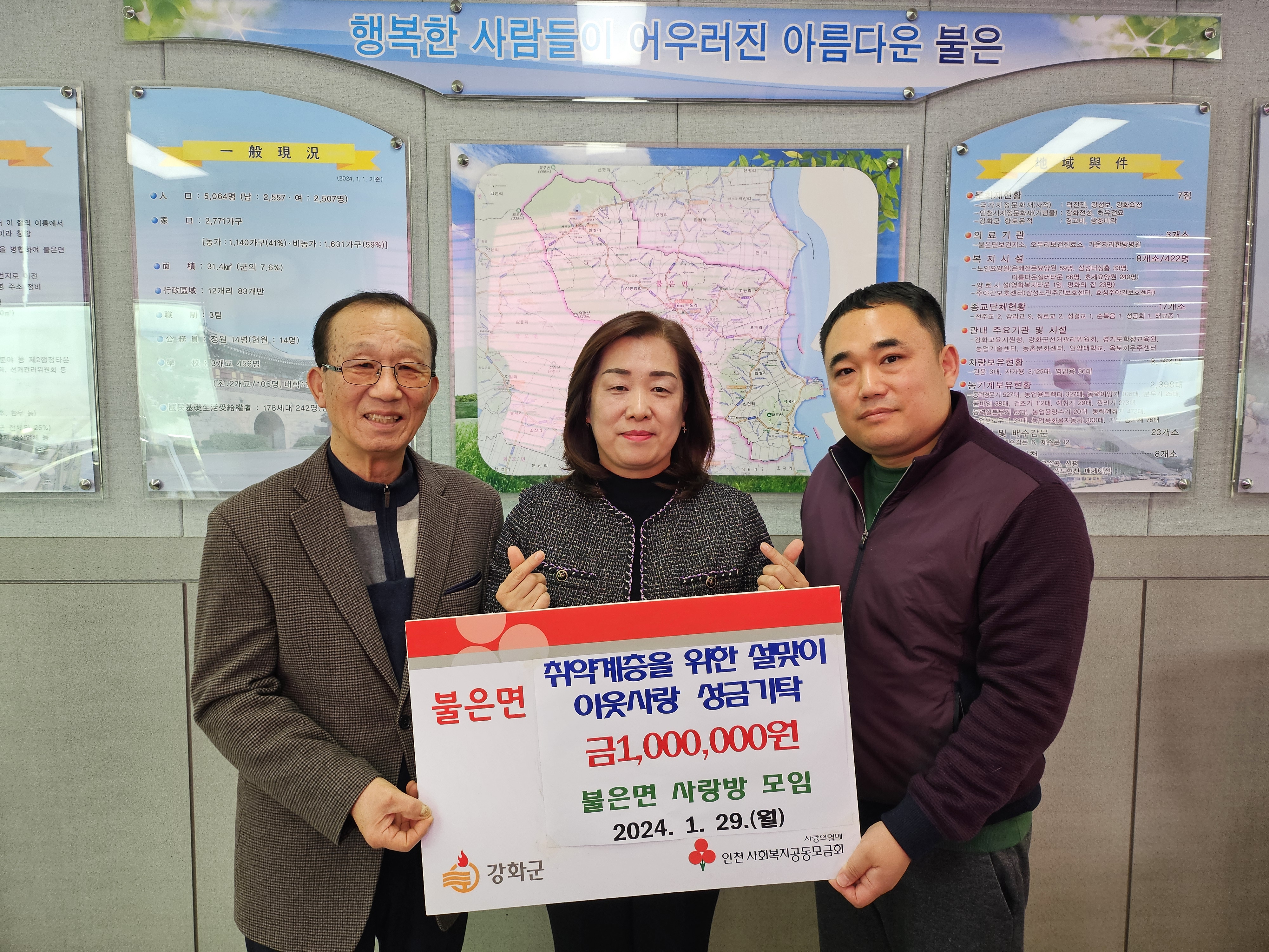 불은면, 사랑방 모임 이웃돕기 성금 100만 원 기탁