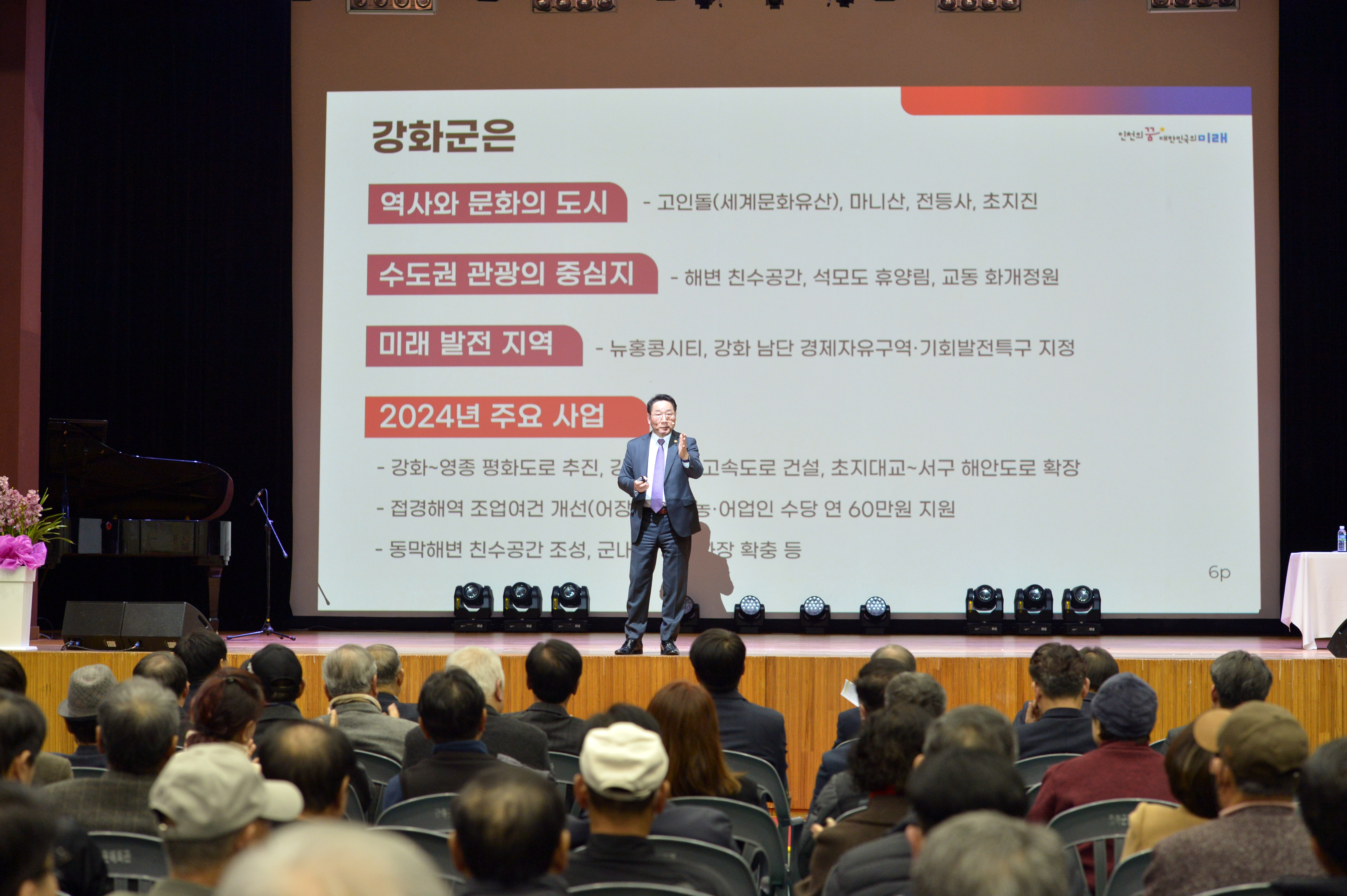 강화아버지 합창단과 지난해 첫 창단한 길상어린이 합창단의 축하공연을 시작으로 유정복 인천시장은 시장 운영 방향 설명하고, 군민 목소리를 들으며 소통했다.