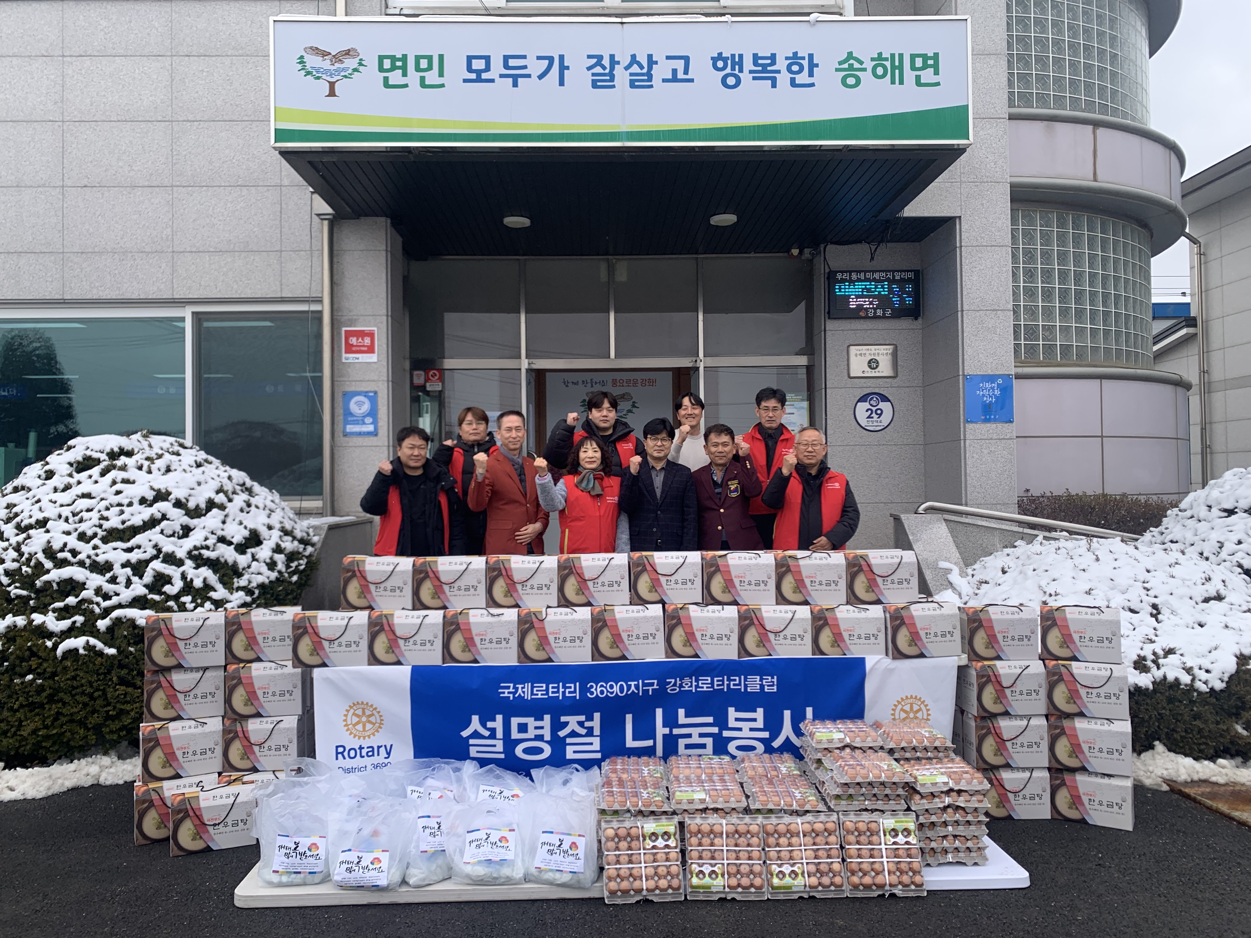 이에 한경진 송해면장은 “지난해부터 꾸준히 기부해 주시는 강화로터리클럽과 위문품 마련에 도움을 주시는 관내 단체에 깊이 감사드린다”며 “앞으로도 희망과 온정이 가득한 송해면이 되길 바란다”고 화답했다.