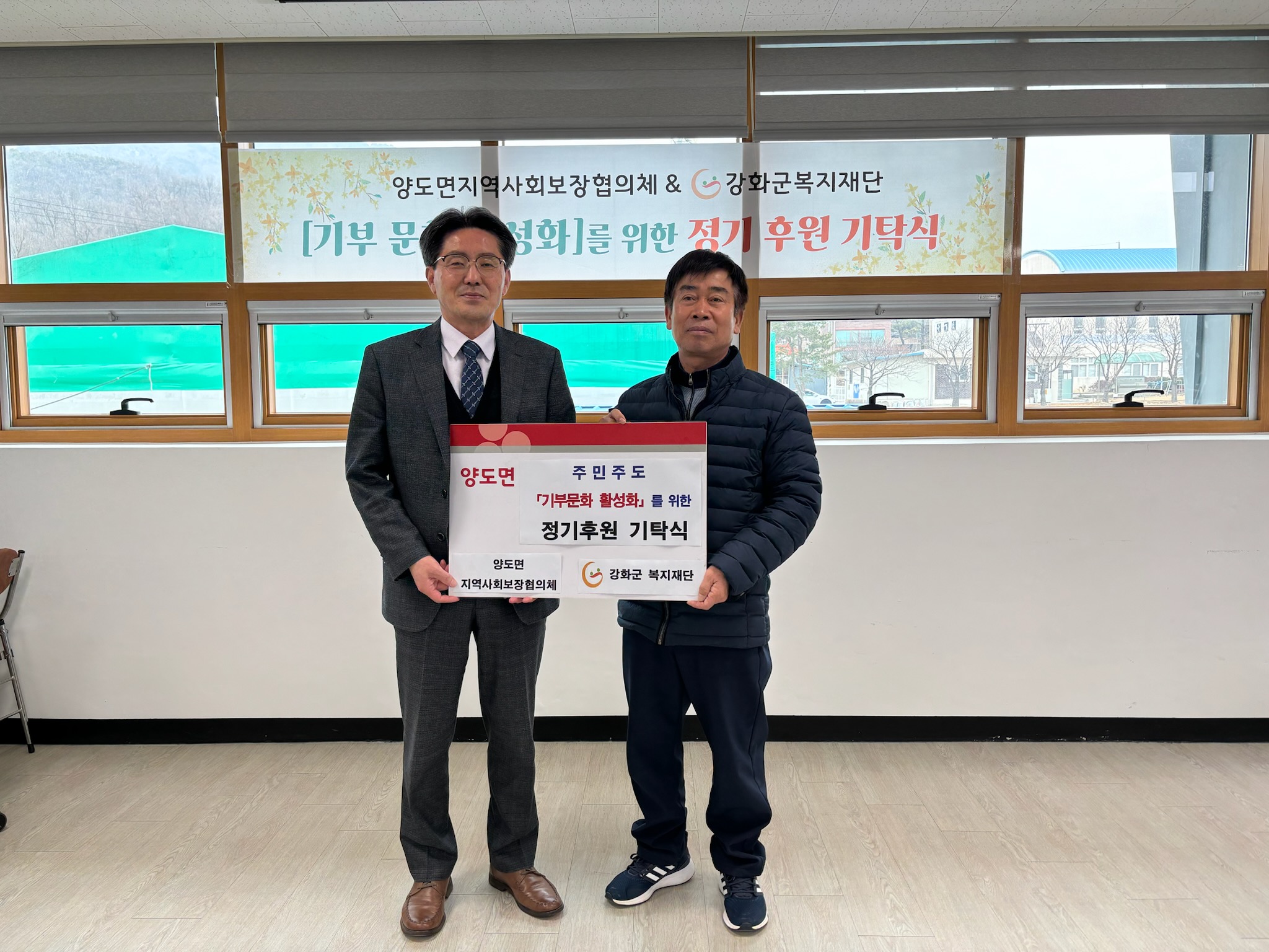 양도면 지역사회보장협의체, 강화군복지재단과 정기후원 기탁식 가져