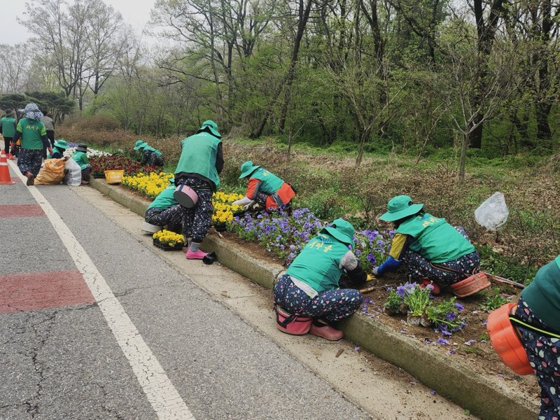 양도면 새마을부녀회, 봄꽃 식재로 아름다운 거리 조성