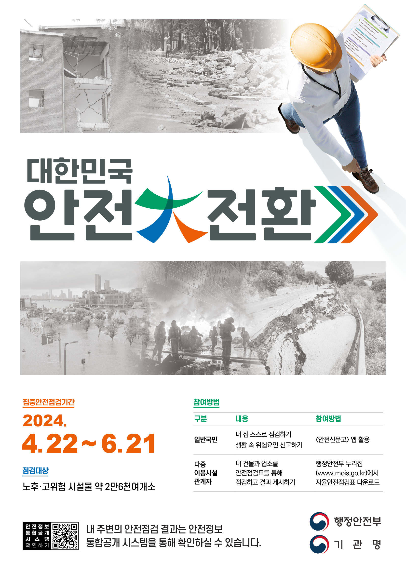 이 기간동안 군은 민간 전문가와 함께 민·관 합동점검을 구성해 많은 사람이 이용하는 노후한 고위험 시설을 대상으로 구조적 안정성과 안전관리 실태를 점검하고, 재해예방을 위한 홍보 캠페인을 진행한다.