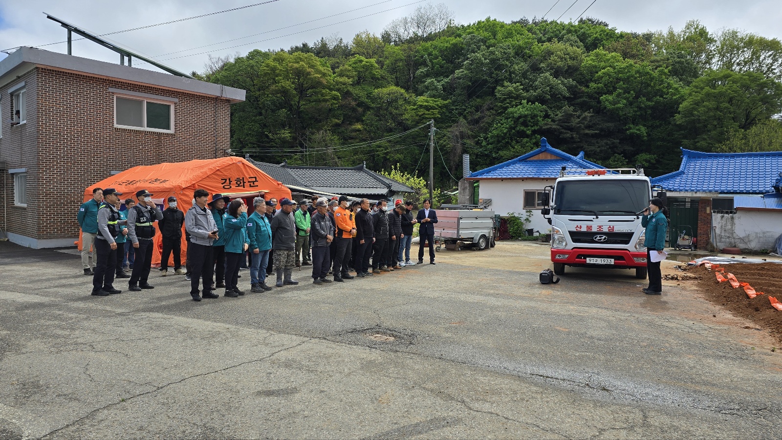 강화군이 24일, 화도면 덕포리 일원에서 마을주민과 유관기관이 함께 ‘2024년 산사태 재난 대비 대피 훈련’을 실시했다.