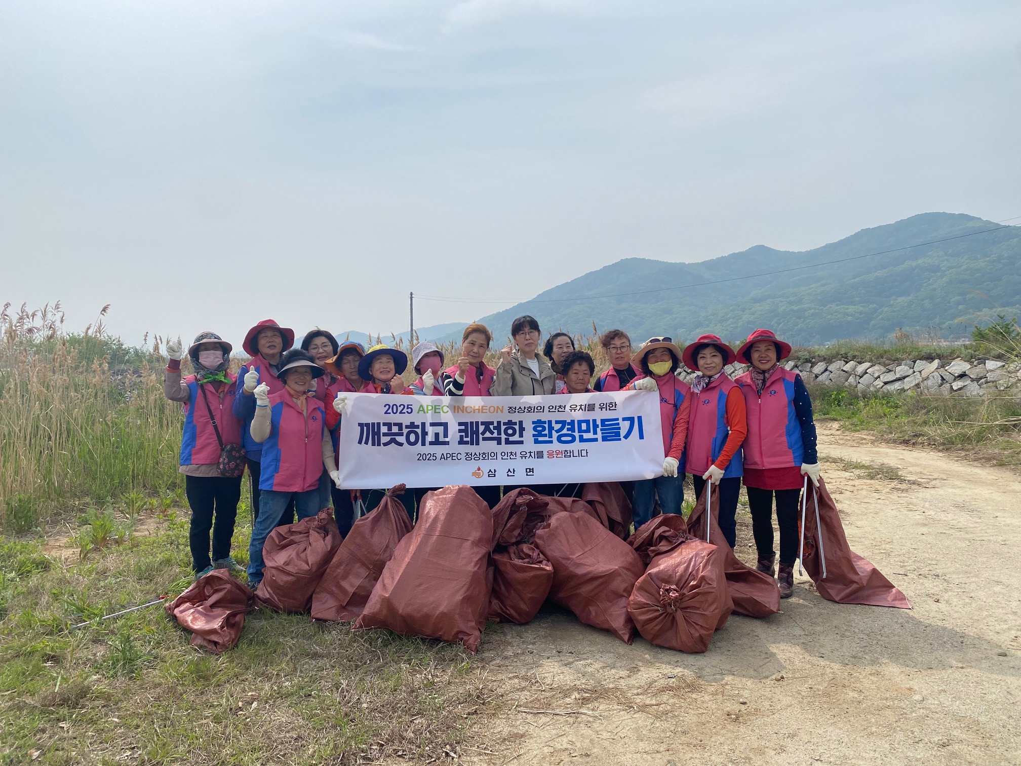 강화군 삼산면 생활개선회(회장 김현미)가 지난 4월 30일 APEC 정상회의 인천 유치를 기원하며 나들길 19코스 일원에서 환경정화 활동을 실시했다.
