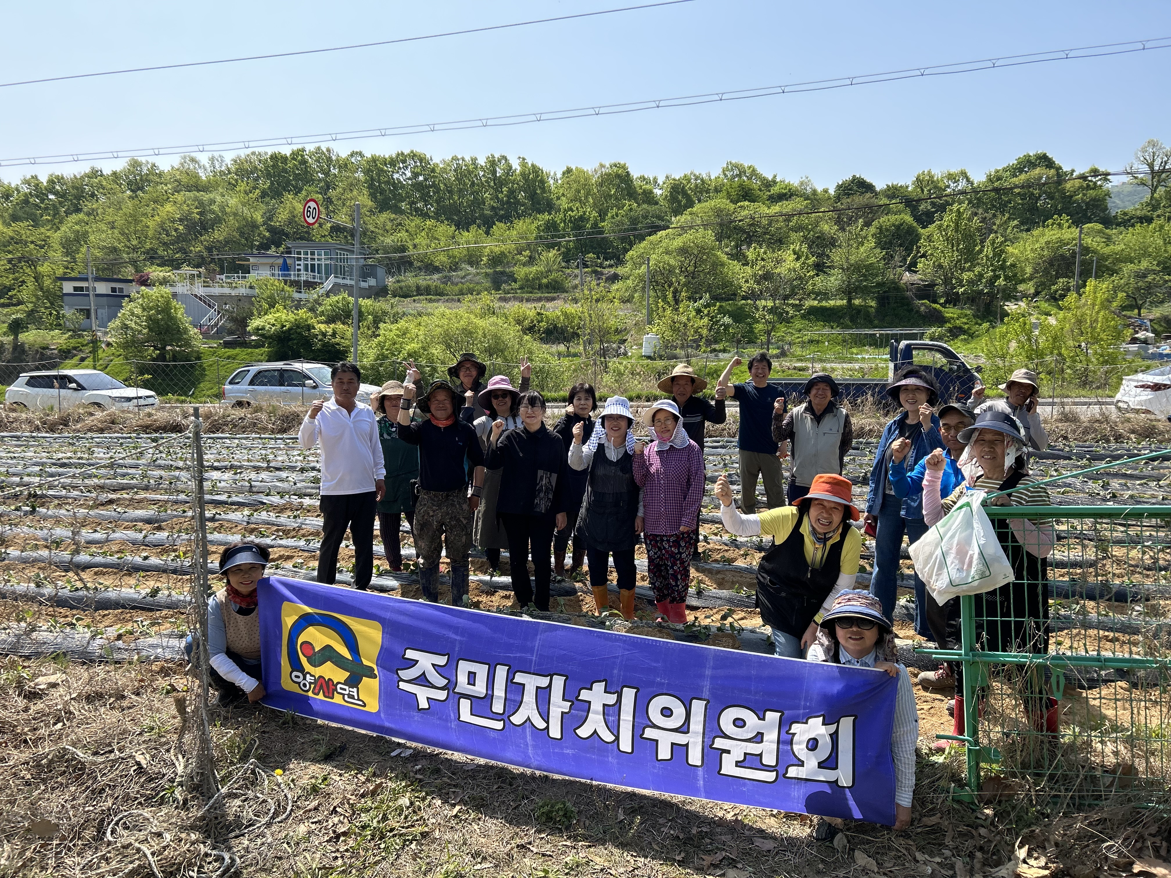 야외에서 진행된 이날 회의에는 주민자치위원 25명이 참여했으며, 주민자치위원회에서 가꾸는 텃밭(1,297㎡)에 고구마를 식재했다. 이는 위원회가 매년 진행하는 사업으로, 가을에 고구마를 수확해 소외된 이웃들을 위해 사용할 계획이다.
