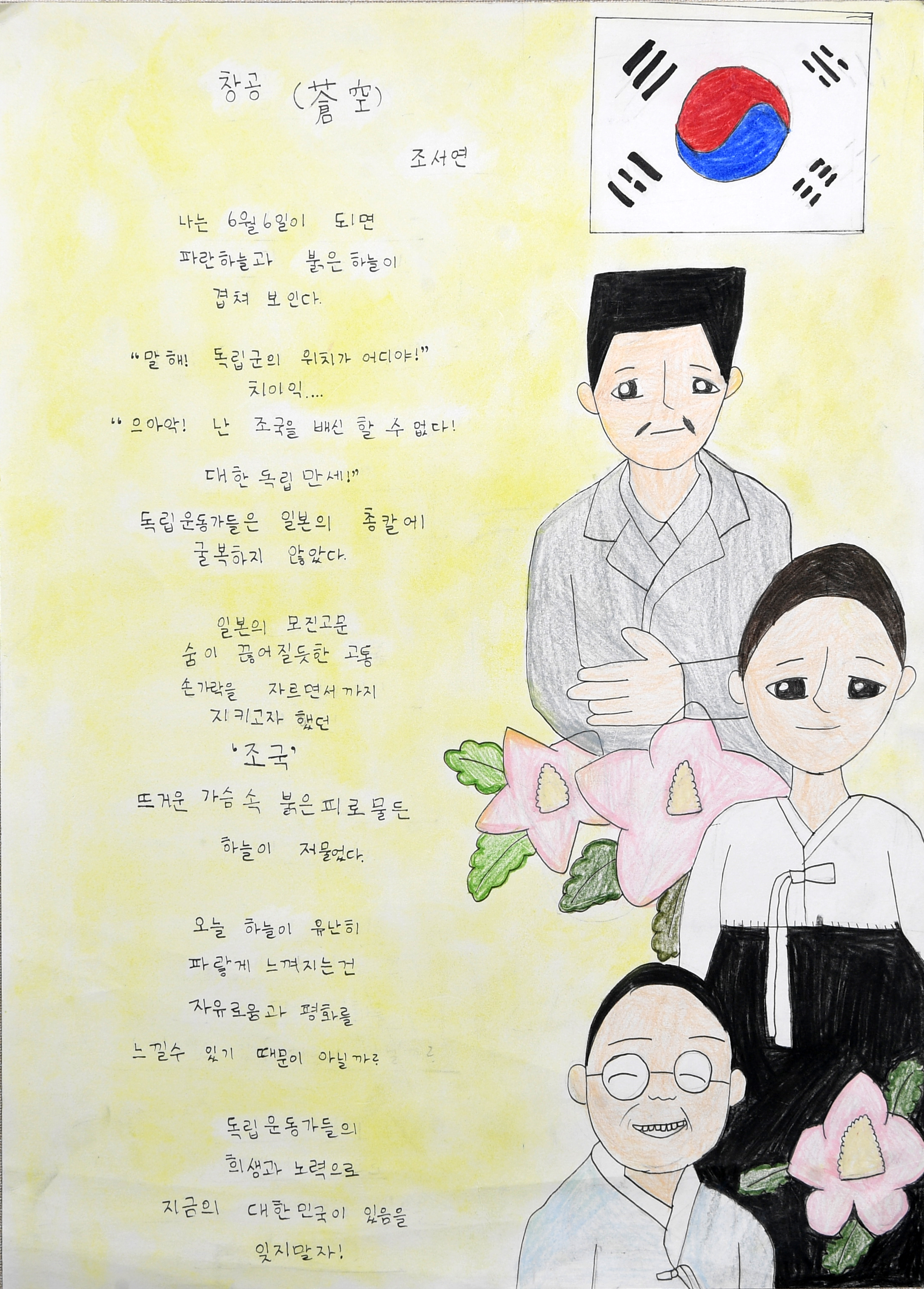 또한, 수상작 12개 작품은 6월 6일 강화읍 견자산에 위치한 현충탑에서 개최하는 ‘제69회 현충일 추념식’ 행사에서 전시를 이어가고, 초·중등부 최우수상 수상자 2명은 헌시를 낭독하는 뜻깊은 시간도 가질 예정이다.